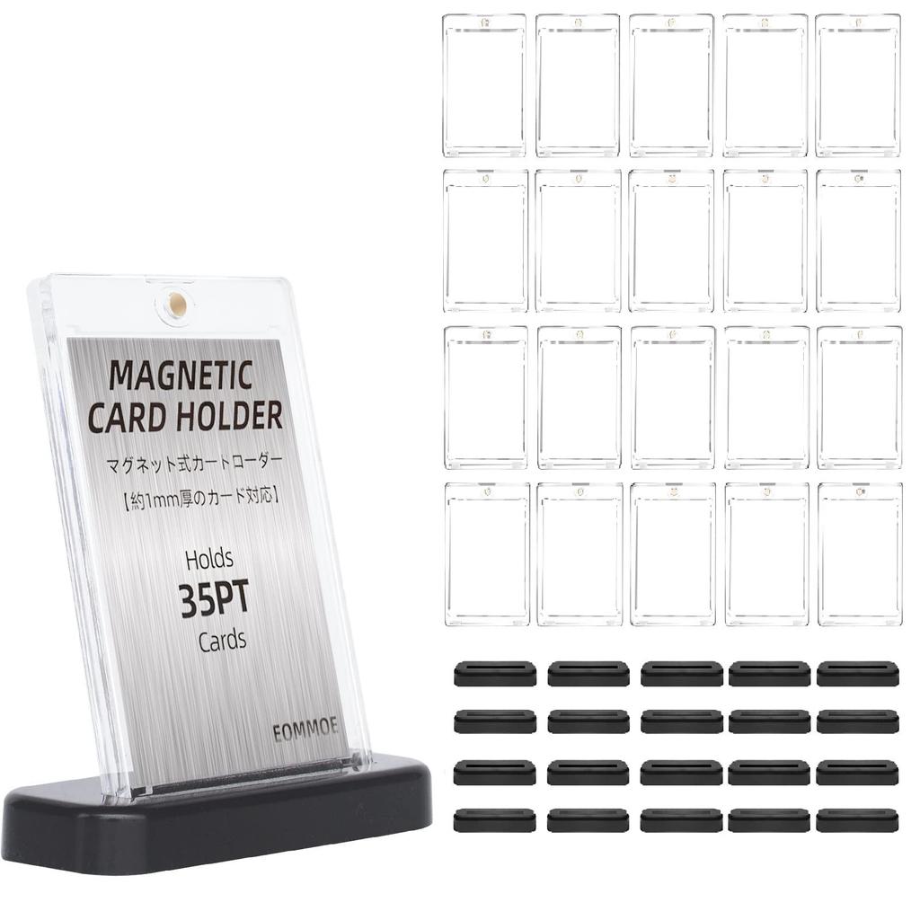 EOMMOE Магнитный загрузчик из 20 загрузчиков 20 рукавных карточек Загрузчик 35pt Подставка Pokeka Коллекционная карта Защита от ультрафиолета с основанием Черный дисплей Подставка Чехол для карт