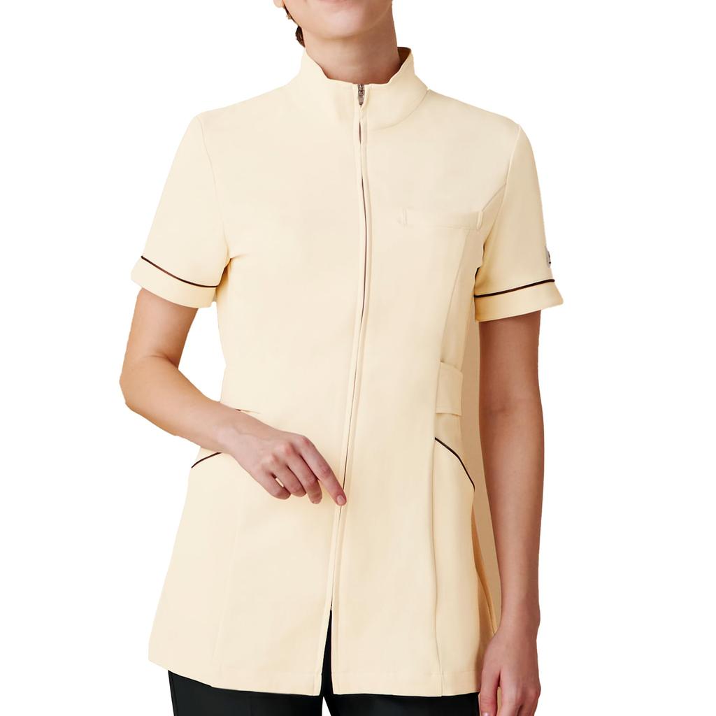 Туника для женщин с воротником-стойкой, застежкой-молнией спереди и поясом, удобная в использовании, для больниц, клиник, приемных, стоматологов, MK0023, кремовый LL [Мишель — купить товар онлайн с бесплатной доставкой до всему миру!