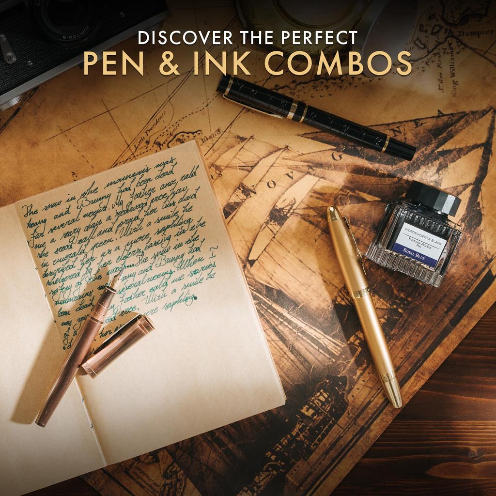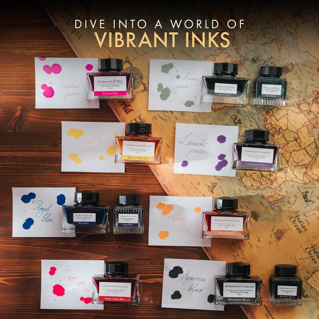Чернила для перьевой ручки Wordsworth Black, флакон для перьевой ручки класса люкс, классический дизайн, плавный поток и (50мл) Издание, [Синие] Чернила, Бутылка,