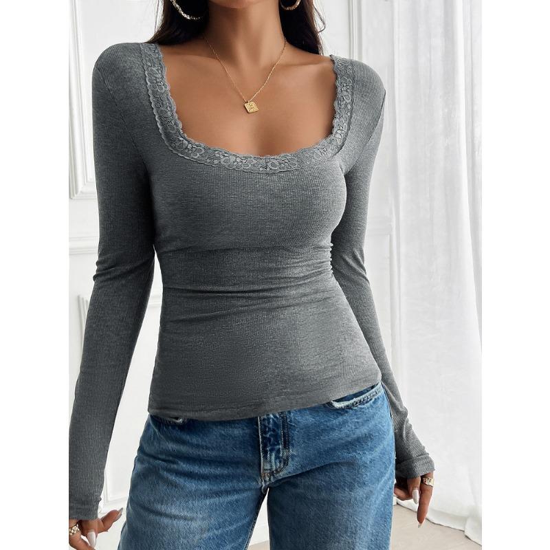 Женские топы осень-зима Y2K Temperament Slim Square Neck Long Sleeve Blow