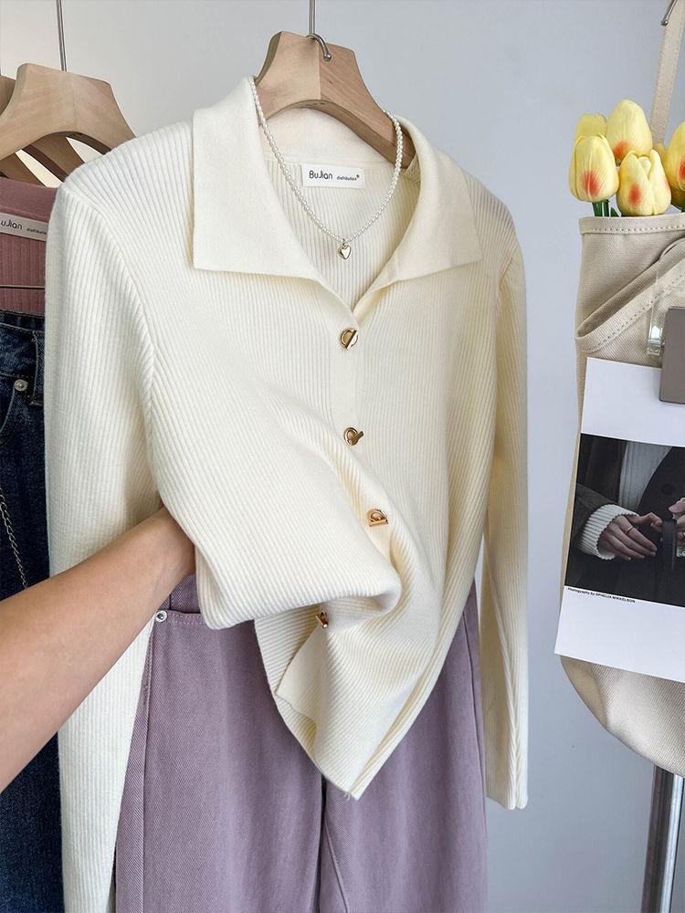 Французский элегантный лацкан вязаный свитер кардиган женский весна осень винтажная однотонная рубашка поло корейский шик под базовый слой одежды