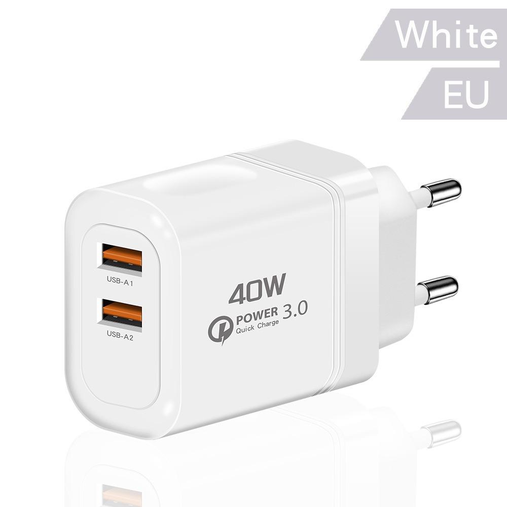 40 Вт USB-зарядное устройство Quick Charge 3.0 с двумя портами для быстрой зарядки iPhone, Samsung, Xiaomi, адаптер для быстрой зарядки мобильных телефонов, вилка ЕС и США