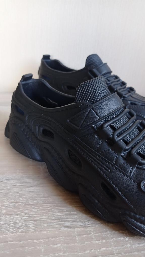 Кроссовки из материала ЕVA. EVA-обувь с каждым годом становится все востребование. И это неудивительно, ведь она отличается высокой экологичностью, не вызывает аллергии, имеет минимальный вес и очень удобна в носке. Обувь ЭВА произведена из вспененного этиленвинилацетата и отлично подходит для дождливой погоды в весенне-осенний период, а также для морозной зимы. В линейке ЭВА обуви сегодня представлены: резиновые сапоги ЭВА; сабо; галоши; сланцы. Такая обувь из пены, как нельзя лучше подойдет для рыбалки, активного отдыха на природе или в загородном доме, ежедневного передвижения по городу, эксплуатации в рабочих условиях на различных производствах и просто прогулок по парку. Поверхность материала мягкая и приятная на ощупь, поэтому в такой обуви ногам всегда комфортно. Сколько бы вы в ней ни находились, ноги не будут потеть и уставать.