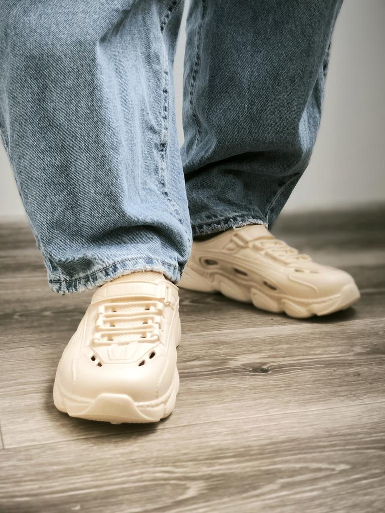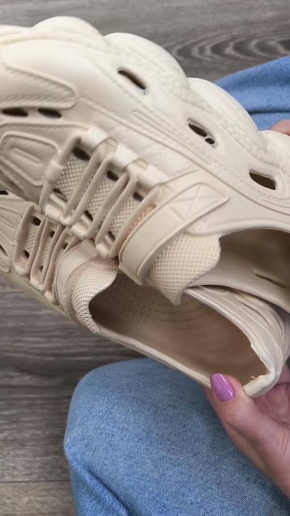 Необычные кроссовки из материала EVА ❤️ EVA - очень легкий материал, что делает обувь удобной для длительного ношения. Материал обеспечивает комфорт и свободу движений. EVA не впитывает воду, что делает обувь подходящей для влажной погоды. Материал обладает хорошими амортизирующими свойствами, снижая нагрузку на стопы. Обувь легко чистится и быстро сохнет, устойчивa к износу и деформации. Такая обувь часто используется для активного отдыха, пляжного отдыха и повседневной носки благодаря своей легкости и комфорту. У продавца кроссовки представлены в двух цветах. На стопу 25 см взяла размер 39-40. Подошли идеально. Аккуратные, лёгкие, удобные - конечно рекомендую 👍 Удачных покупок ❤️ Ваша Вика 🙂