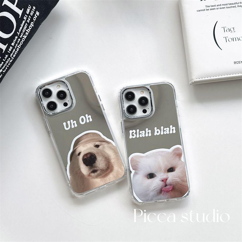 Чехол для телефона Funny Cute Dogs Cats для Apple iPhone 16 Promax - акриловый зеркальный противоударный креативный чехол для iPhone16/15/14/13/12/11/Xs/Xsmax/Pro/Plus/mini