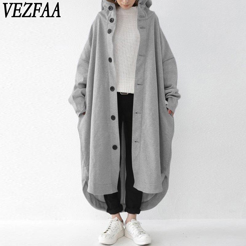 VEZFAA Женская мода Повседневный однотонный принт Осень Зима Длинные рукава с капюшоном Куртки и пальто — купить товар онлайн с бесплатной доставкой по всему миру!