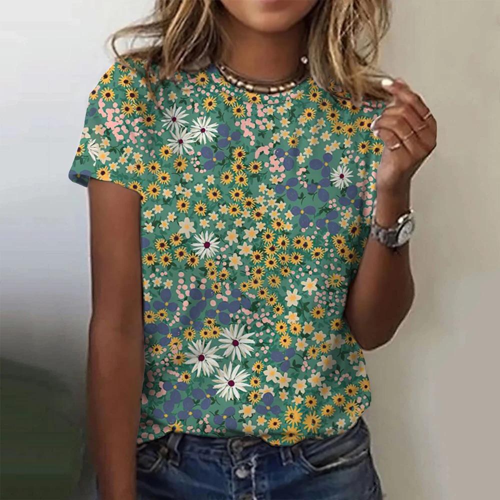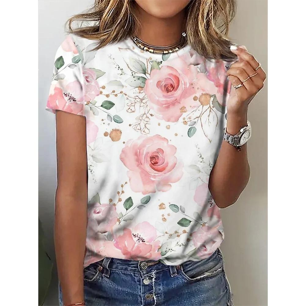 Футболка с цветочным принтом, женская футболка с круглым вырезом и принтом в виде 3D-цветка, модная одежда 2010 года, летняя футболка большого размера 2010 года, женская одежда ТОПЫ