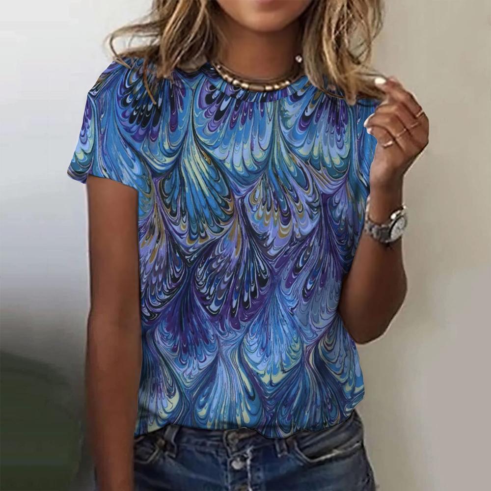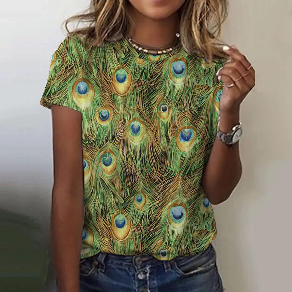 Летние модные женские футболки с 3d принтом и принтом павлиньих перьев, топ в стиле Харадзюку, красочная индивидуальная одежда больших размеров с короткими рукавами