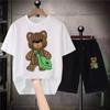 Комплект из 2 предметов для мужчин, хлопковые футболки с короткими рукавами и принтом медведя, шорты, спортивный костюм, короткие комплекты, мужские повседневные летние наряды, мужской комплект