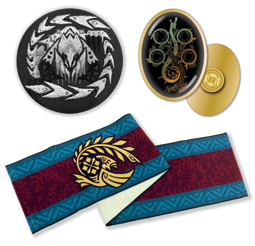 ・Значок значка Название логотипа Символ: Будет выпущена почетная нашивка с изображением логотипа игры «Monster Hunter Wilds».. Дизайн декорирован основой из цинкового сплава, а поверхность покрыта смолой для создания красивого вида.. Вы также можете украсить свою пробковую доску значком-булавкой для стильного оформления.. Размер: В30 x Ш22 x Г2мм