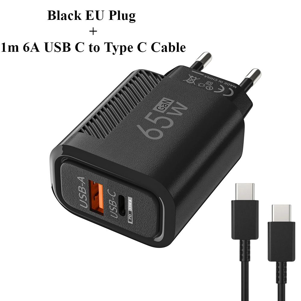 USB C GAN зарядное устройство Всего 65 Вт Быстрая зарядка PD Type C Быстрая зарядка Высокоскоростной мобильный телефон адаптер для iPhone 15 14 Xiaomi Samsung