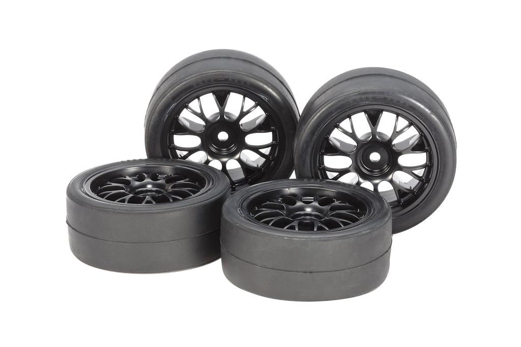 - На базе карданного привода 4WD TT-02 изготовлены корпус редуктора и амортизатор, изготовление которых требует некоторого времени и усилий, а шины уже приклеены к колесам, что обеспечивает быструю сборку.