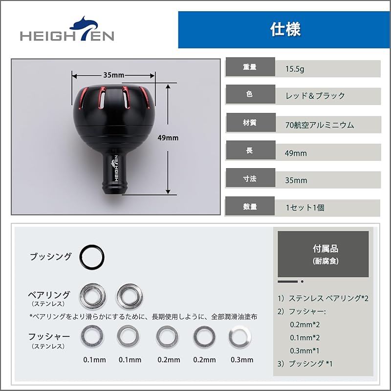 [Размер] Диаметр 35 мм, длина 49 мм [Вес] 15,5 г [Материал] Авиационный алюминий 70-й серии.