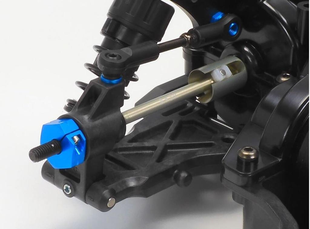 ・В подвеске используются рычаги подвески TRF420 для превосходной маневренности, а сзади используется регулируемое крепление подвески втулочного типа.