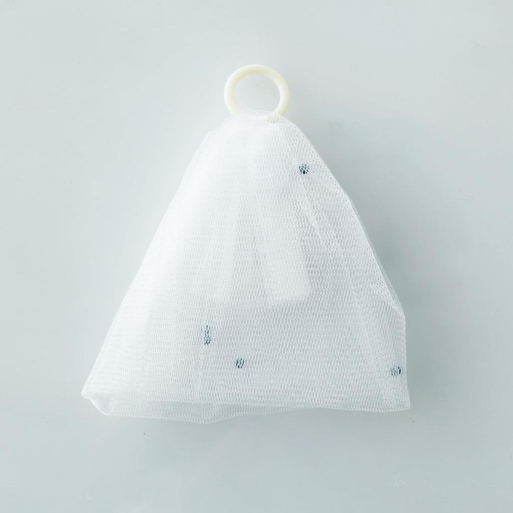 [Как использовать] 1) Возьмите примерно размером с вишню.. 2) Проденьте палец в кольцевую часть, обильно смочите мыльную сетку водой, а затем нанесите мыло на внутреннюю часть кольца, равномерно распределив его.. Также важно положить хорошее мыло в самую дальнюю часть сетки для мыла.. 3) Взбивайте в течение 30–40 секунд обеими руками круговыми движениями, как бы обволакивая воздух.. Если добавить несколько капель воды в процессе, пена будет хорошо образовываться.. 4) Выдавите пену от корня к кончику, крепко прижимая кольцевую часть.. 5) Липкая адсорбционная пена готова!