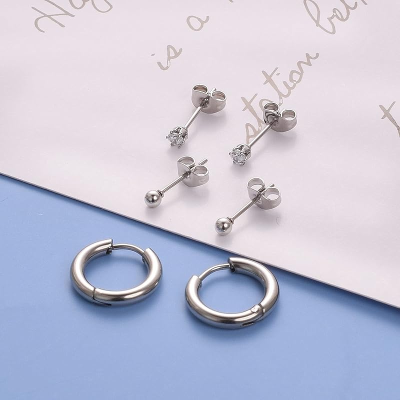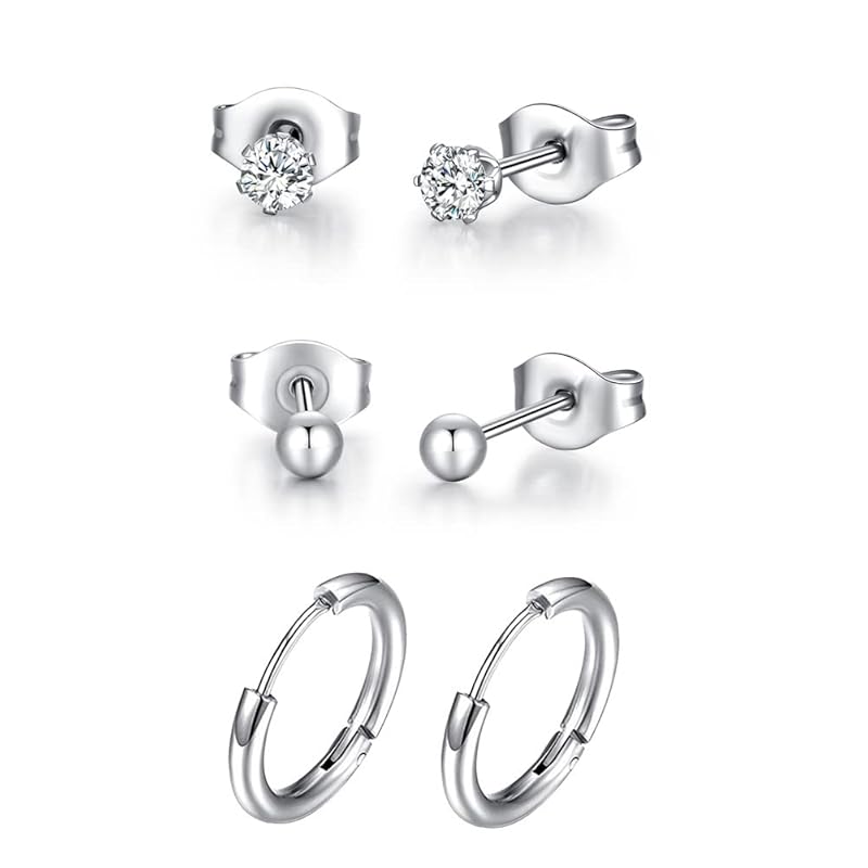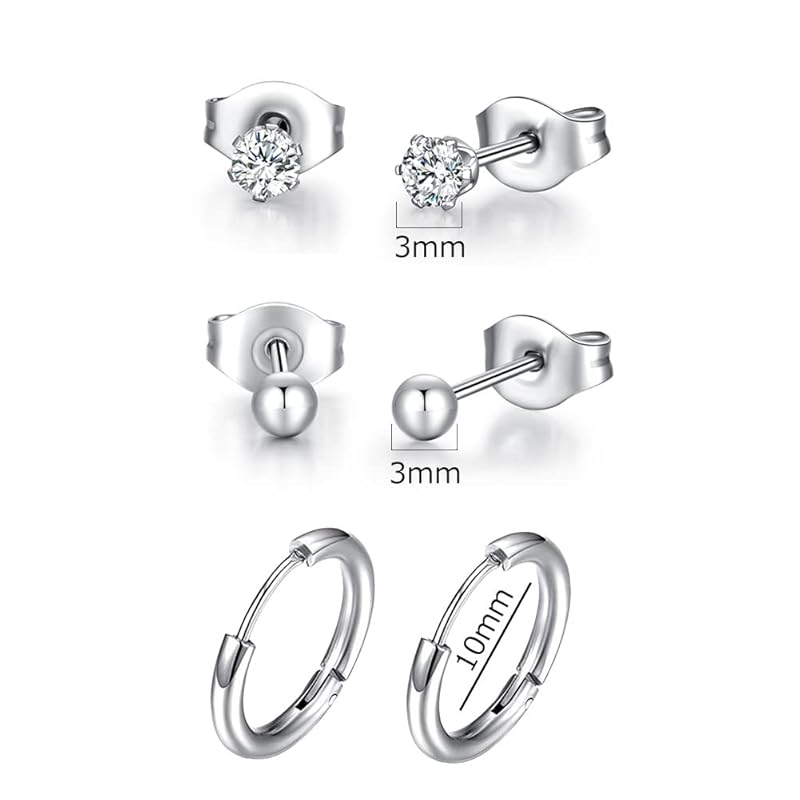 Yoursfs stainless earrings men's ladies 3 pair set simple cartilage piercing a single diamond ball hoop earrings fashion Accessories(silver2#,