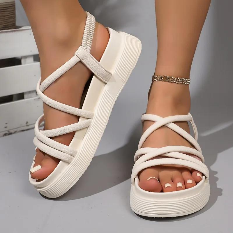 Распродажа женской обуви. Женские сандалии с узкими ремешками. Повседневные сандалии на платформе. Женские сандалии с резинкой и круглым носком. Плоские туфли с женскими ремешками.