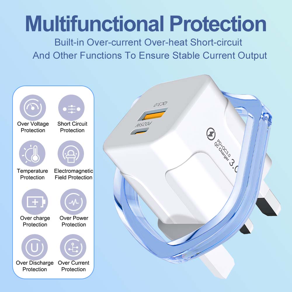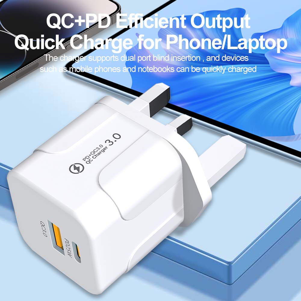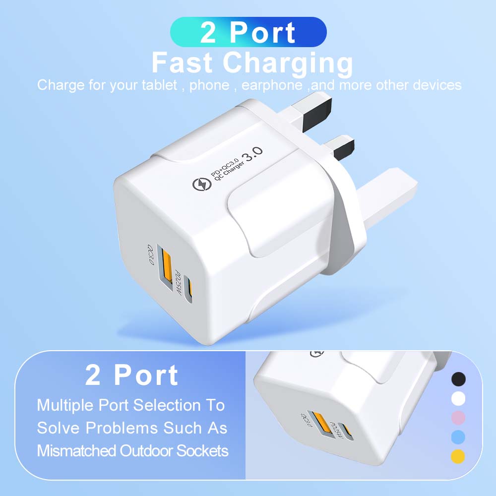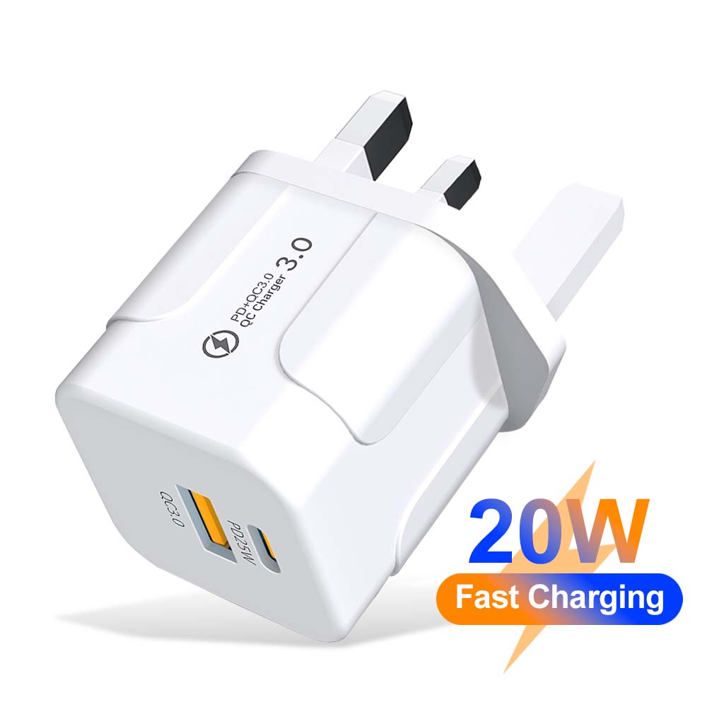 2 порта 20 Вт USB C быстрая зарядка британская вилка настенное зарядное устройство адаптер для iPhone 16 15 14 13 12 Pro Max Plus Xiaomi Samsung телефон зарядное устройство