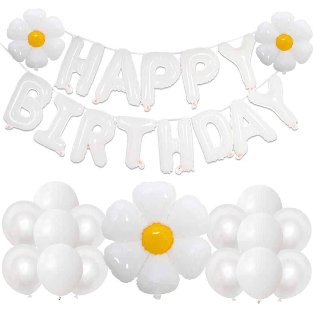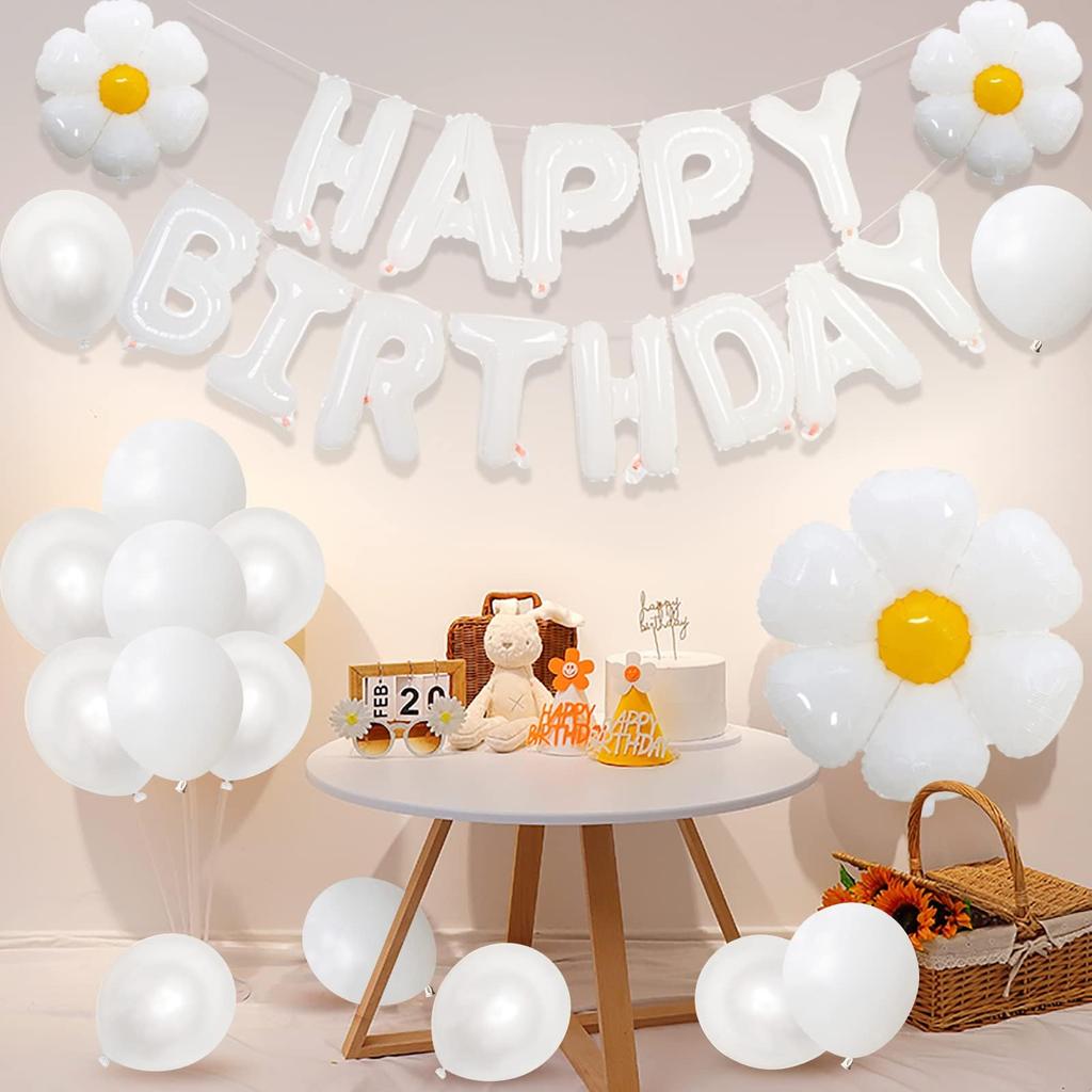 GRESATEK Воздушный шар на день рождения Ромашка Воздушный шар Украшение на день рождения Письмо с днем рождения Воздушный шар с фотографией Потрясающий цветок Белый Белый Роскошный набор