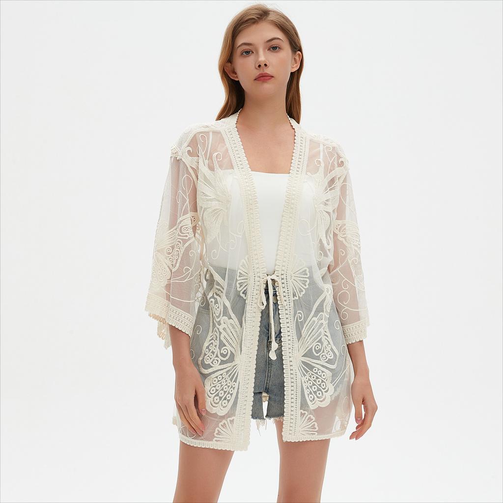 DIMANAF 2025 Лето Женщины Летучая мышь Пляжный кардиган V-образный вырез Футболка Базовый кружевной Новые модные топы кружевные футболки Повседневные свободные футболки — купить товар онлайн с бесплатной доставкой по всему миру!