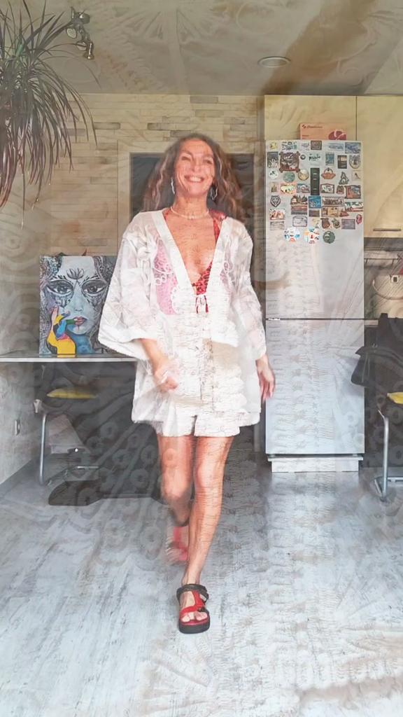 Накидка сетка и кружево 🤍🕸️ Всем солнечный приветик 👋😉 Нежная, лёгкая и воздушная для отпуска у моря идеально 🥰 На мне села очень-очень свободно, как и на мамуле ☺️ Сядет и на большие параметры Мамулины параметры: 🎗рост 157см 🎗вес 78кг 🎗длина плеч 42см 🎗объём груди 114см 🎗объём талии 97см 🎗объём бёдер 114см. Мои параметры: 🎗 рост 160см 🎗 вес 54кг 🎗 длина плеч 40см 🎗 объём груди 93см (75D) 🎗 объём талии 63см 🎗 объём бёдер 93см. Качество: 🤍 сетка и набивной рисунок 🕸️ скорее всего синтетический материал, но приятный к телу 🤍 завязка кружевная 🕸️ рукава и пройма широкие 🤍 швы ровные 🕸️ качество отличное. Точные замеры накидки: 📏 ОГ - 130см 📏 объём низа накидки - 130см 📏 длина накидки от плеча - 76см 📏 длина плеч - 55см 📏 длина рукава от воротника - 53см 📏 объём проймы - 58см 📏 объём манжеты - 52см. Мы накидкой довольны очень-очень и рекомендуем её всеми ручками 🤗💞 Спасибо, продавцу и Джуму 😘 Чмок-чмок-чмок, всех кто со мной на Джуме 😘 Желаю удачных покупок 🛍😊 терпения 🤗 и весны в душе 🌈☀️🌱🦋🌼💕🐞🌳🕊 До скорого 🙌😊 Песня во втором видео: Trinix «No Sleep» 🎶💃🎶