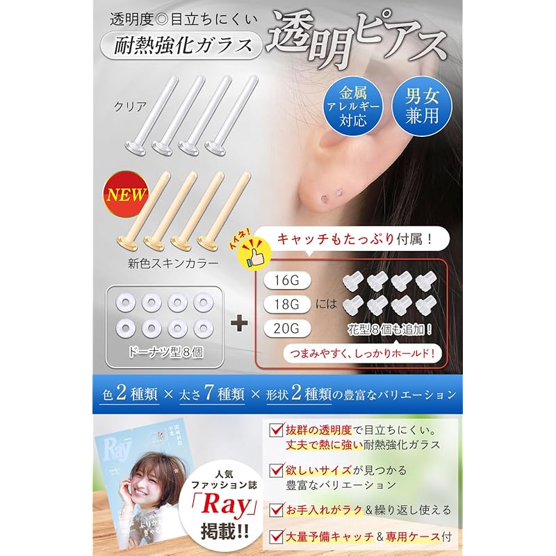 💎[Он очень прозрачный, поэтому его не видно! [Изготовлено из прочного термостойкого закаленного стекла] Изготовлено из термостойкого закаленного стекла, которое в 3,5–4 раза прочнее обычного стекла, его трудно разбить, оно устойчиво к воздействию тепла и отличается высокой прозрачностью, что делает его менее заметным. Поскольку оно гладкое, оно не напрягает кожу, когда вы его надеваете или снимаете, а также когда вы его надеваете. Оно не содержит металла, поэтому не нужно беспокоиться об аллергии. Эти прозрачные серьги рекомендуются тем, кто хочет, чтобы их отверстия для пирсинга были незаметными, например, на работе с частичной занятостью или на рабочем месте. Их могут использовать как мужчины, так и женщины.