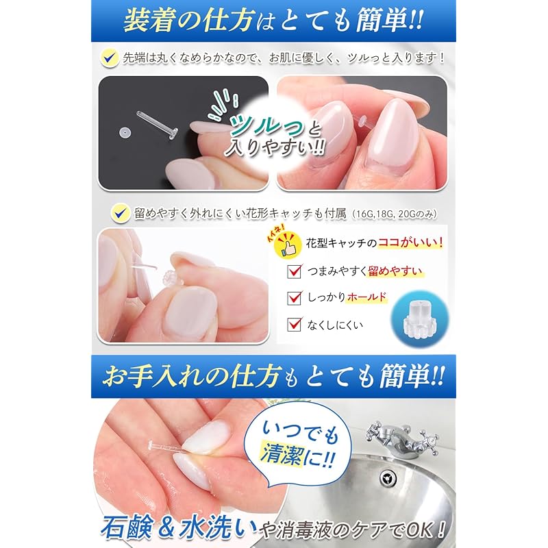 💎[Простота в уходе и возможность многократного использования] Легко чистить, просто промойте мылом и водой или продезинфицируйте спиртом. Можно использовать многократно. 💎[В комплект входят запасные защелки + футляр для спокойствия, даже если вы их потеряете] Для 4 сережек имеется 8 защелок, включая запасные, и 8 удобных для захвата защелок в форме цветка. (Только 16G, 18G, 20G).В комплект также входит прозрачный футляр, через который видно содержимое.