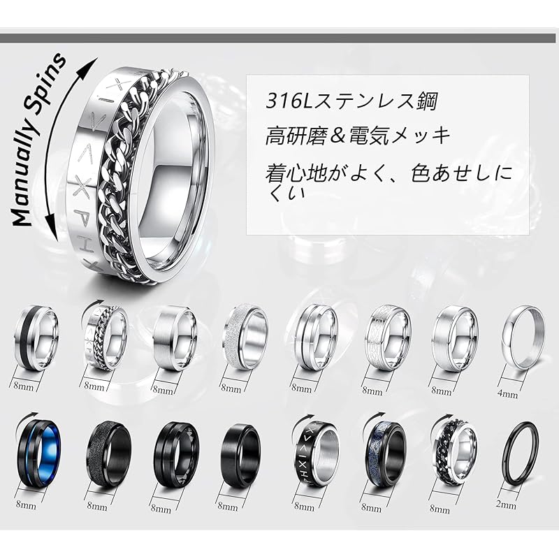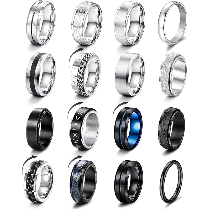 🌟[Rings for Men] One order includes 16 men's silver rings: Celtic knot pattern tungsten ring, matte finish polished band ring, and chain ring.Classic silver color, masculine style, perfect ring for men.Multiple choices to wear the perfect ring for men boys.Reasonable price, worth the purchase.