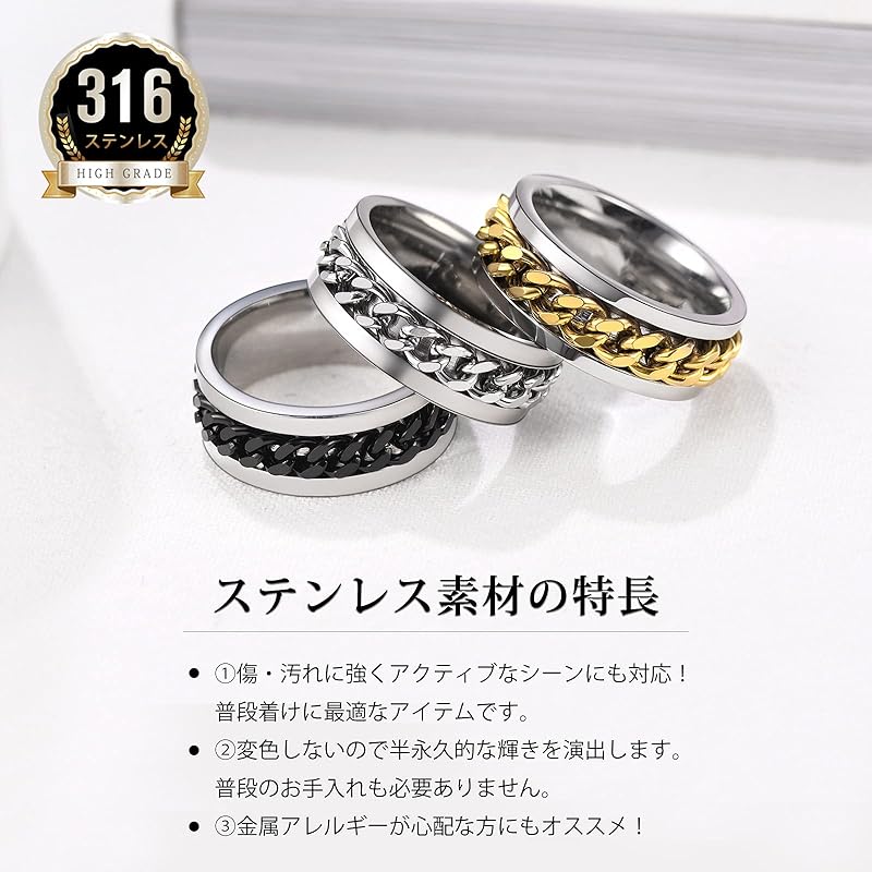 [Made of surgical stainless steel] 1) Resistant to scratches and stains, suitable for active situations, 2) Produces a semi-permanent shine as it does not discolor, 3) Recommended for those who are concerned about metal allergies.