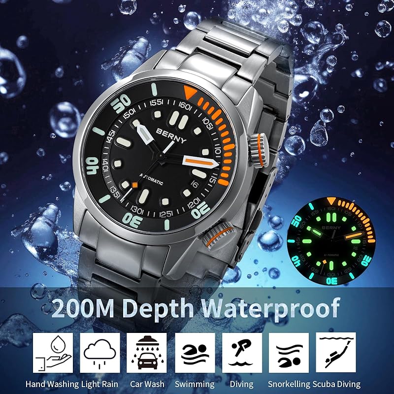 Часы BERNY мужские механические часы с ручным заводом автоматические часы часы для дайвинга на 200 метров наручные часы сапфировое стекло HV600 прочная нержавеющая сталь