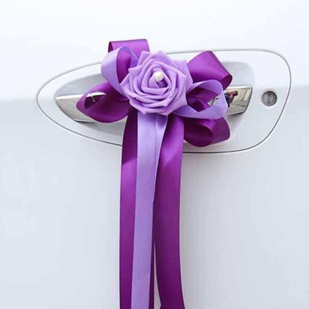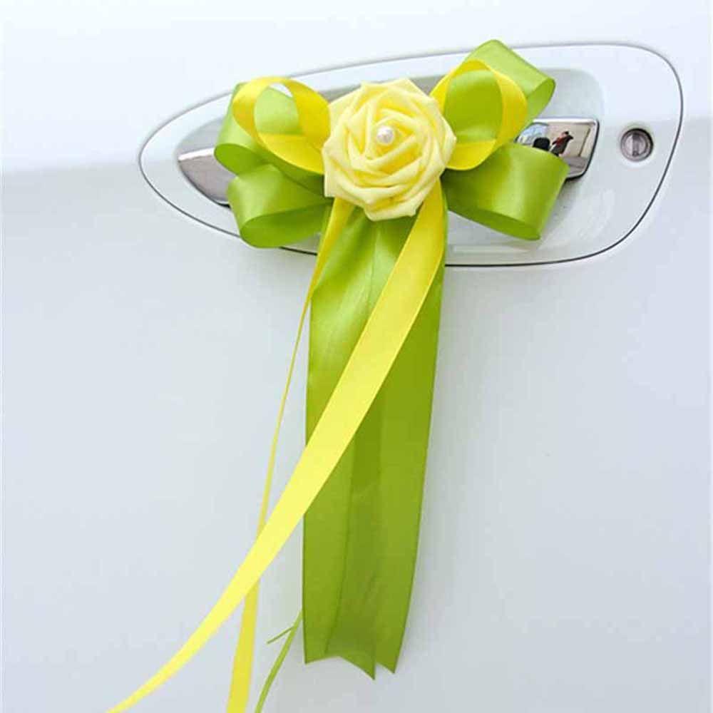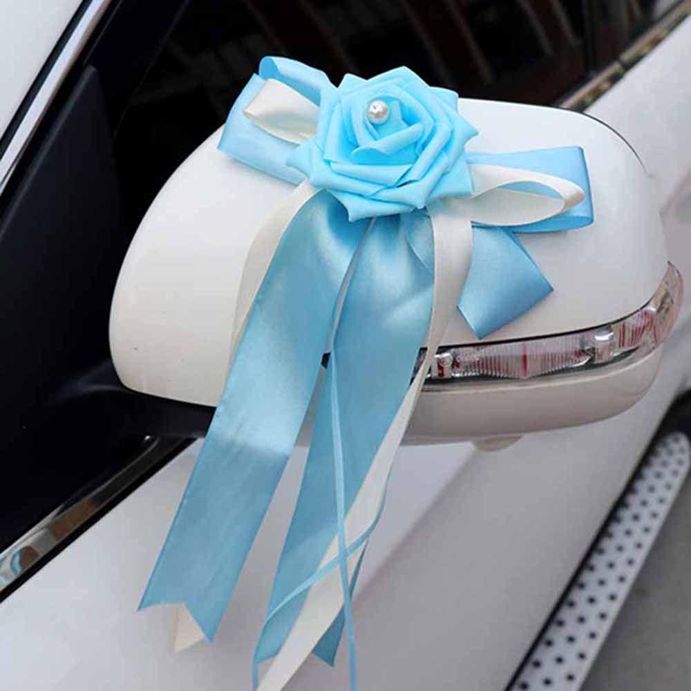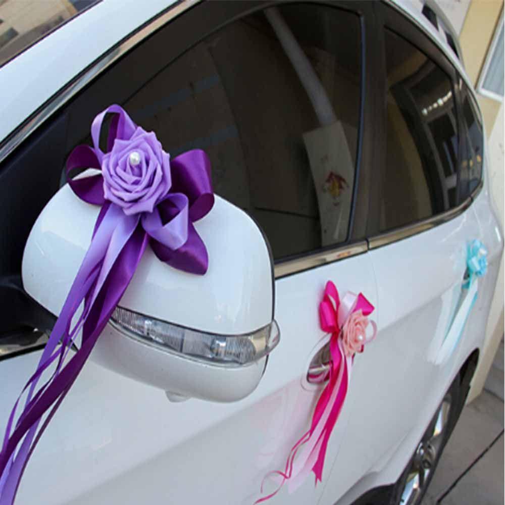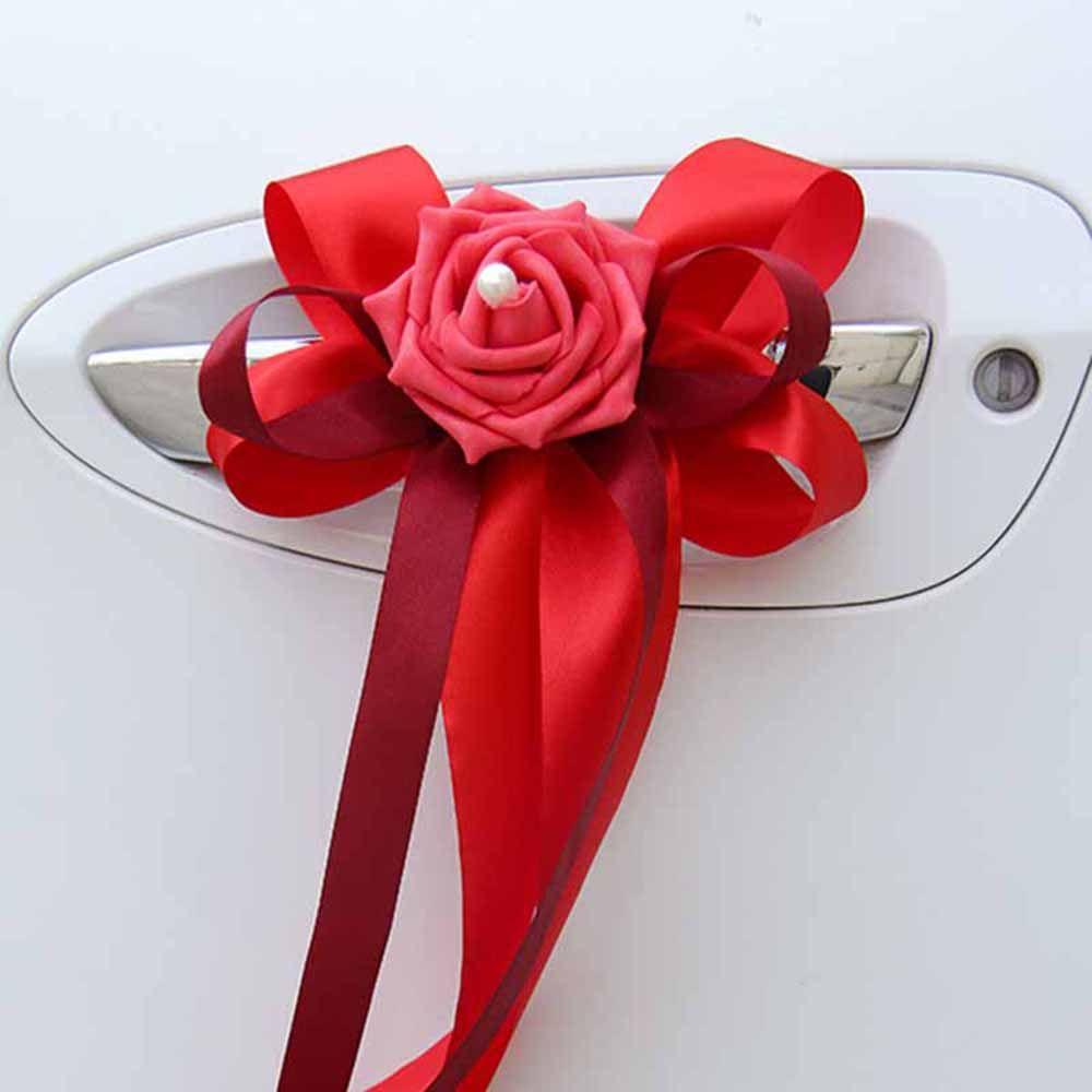 Невеста Искусственный Цветок Лента Зеркало Заднего Вида Свадебные Дверные Ручки Роза Цветок Украшение Автомобиля