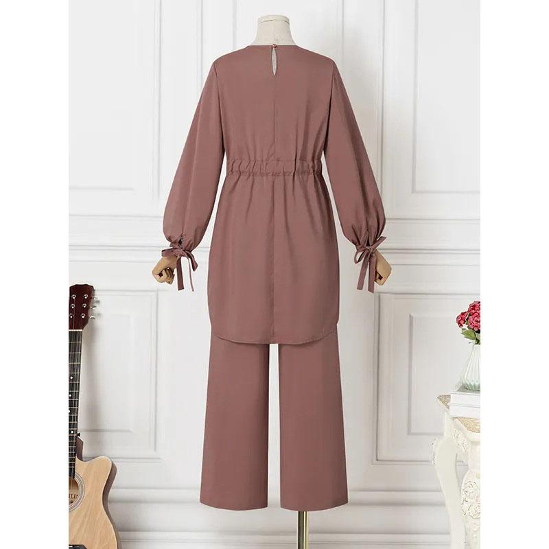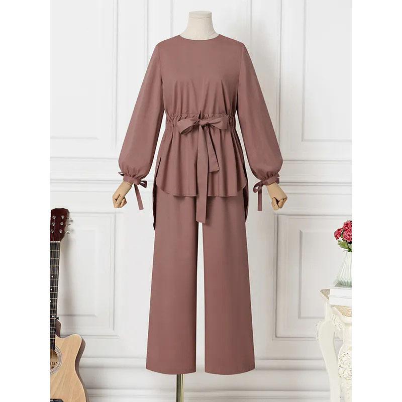 Женские комплекты однотонных топов с длинными рукавами и свободных брюк, элегантный модный повседневный спортивный костюм, кафтан
