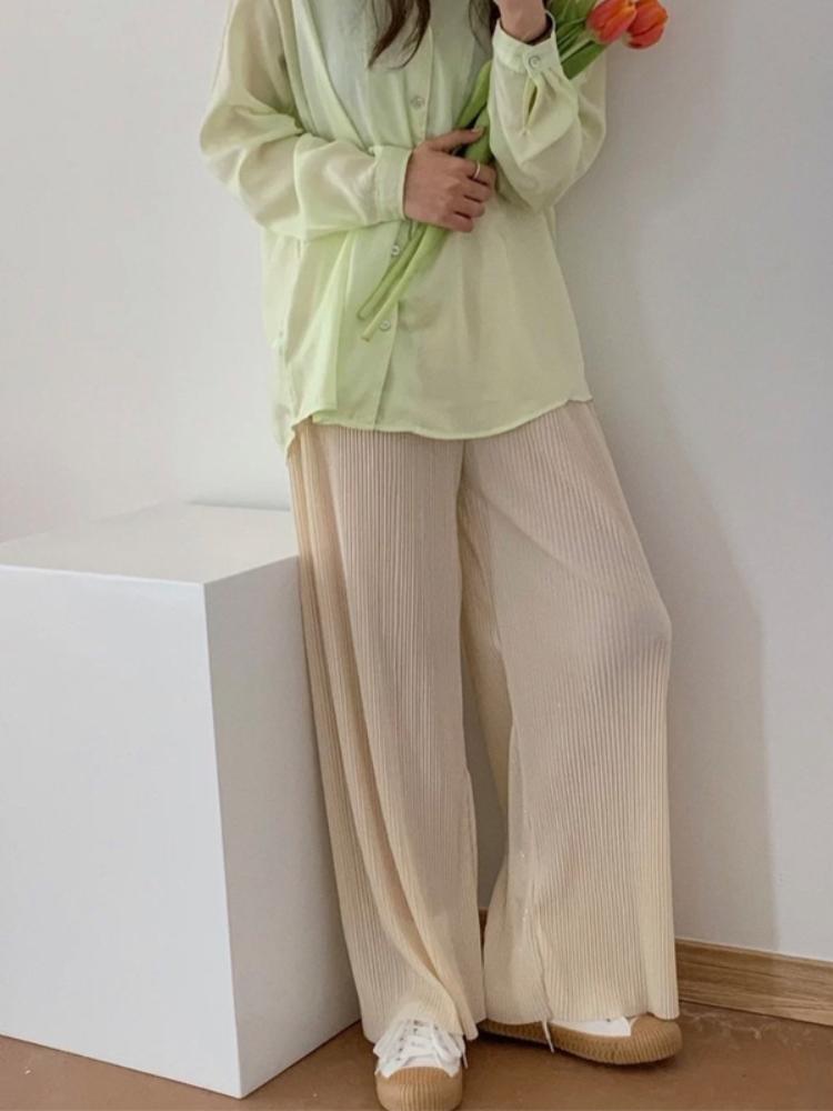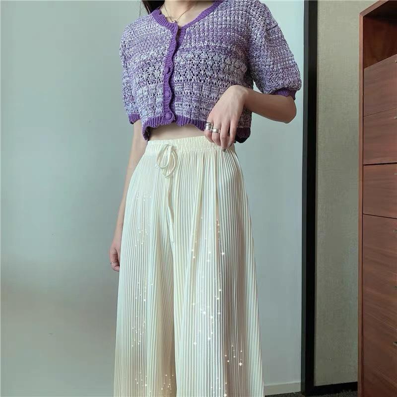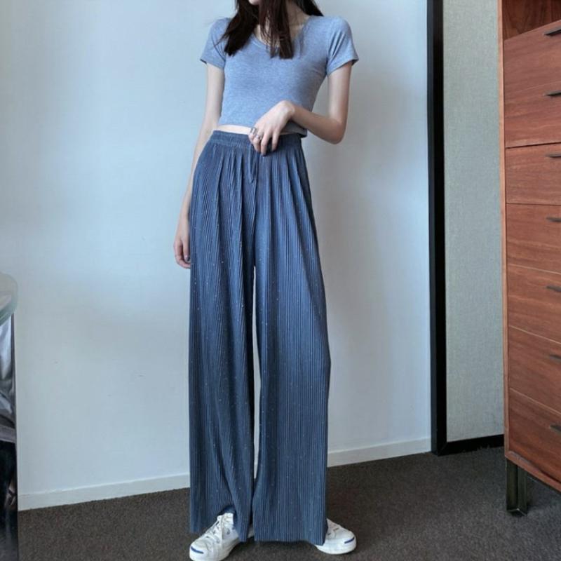 Летние женские шифоновые широкие брюки повседневные свободные прямые брюки для девочек ультратонкие брюки с высокой талией