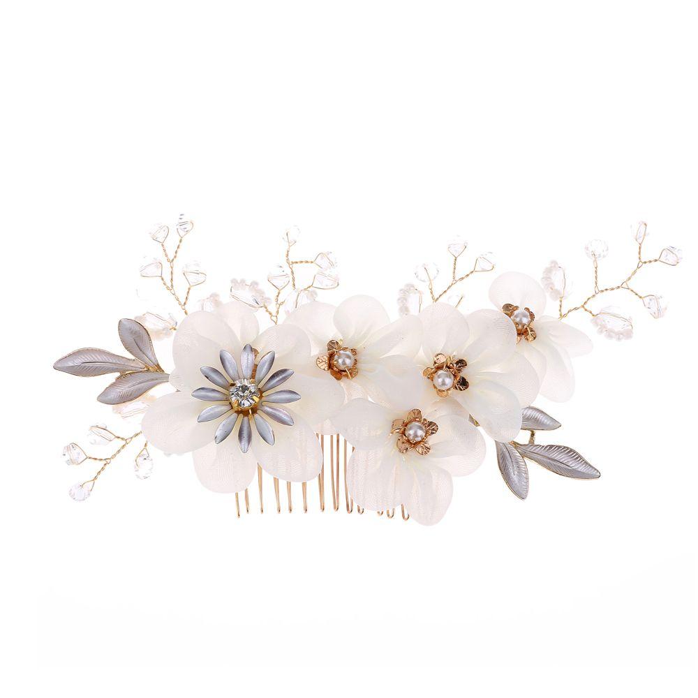 Fashion White Flower Pearl Crystal Bridesmaid Tiara Hair Combs Bridal Clips Flower Hair Pin
