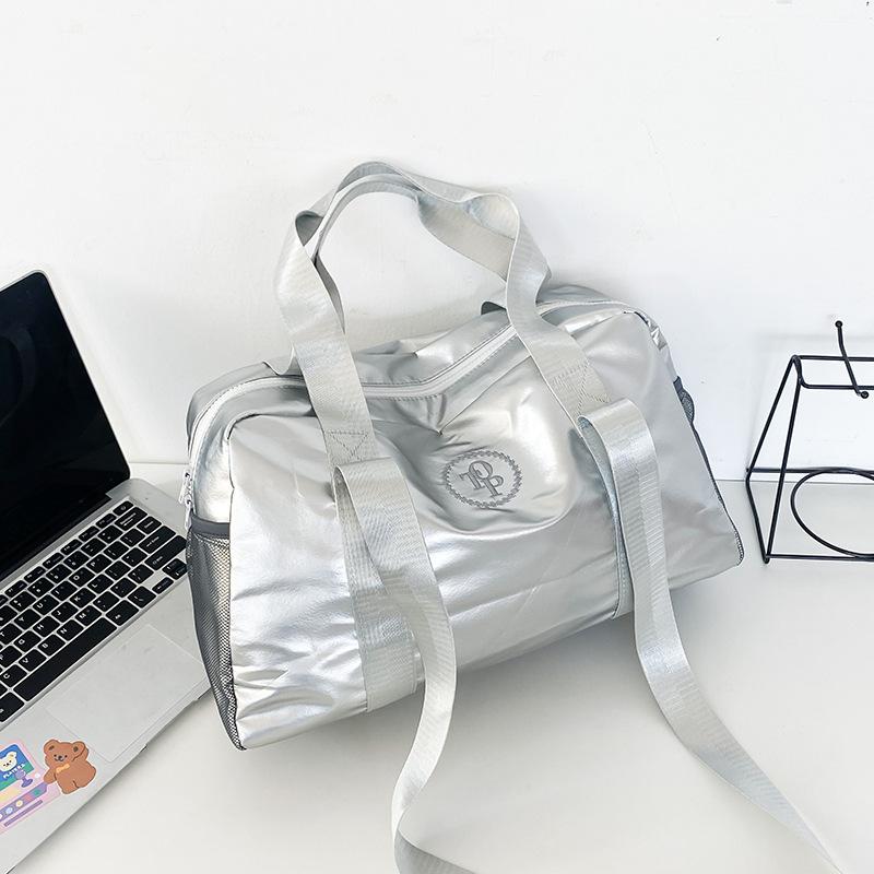 Новая глянцевая дизайнерская модная и универсальная большая вместительная серебристая спортивная сумка через плечо дорожная сумка дорожная сумка