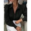 GMXIA Осенне-зимняя однобортная однотонная рубашка с вышитыми петлями и длинными рукавами с лацканами для женщин