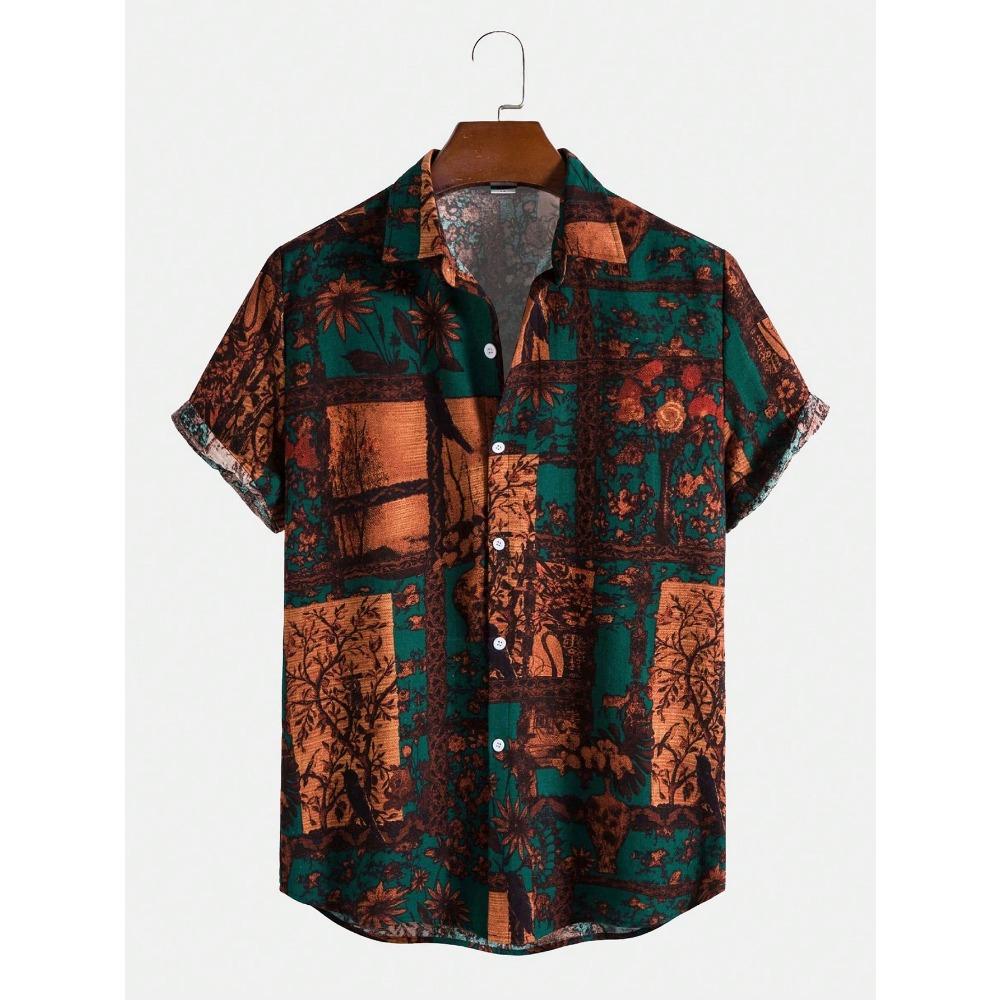 Мужская летняя ретро-сорочка с ботаническим цветочным принтом, модная повседневная рубашка с коротким рукавом — купить товар онлайн с бесплатной доставкой до всему миру!