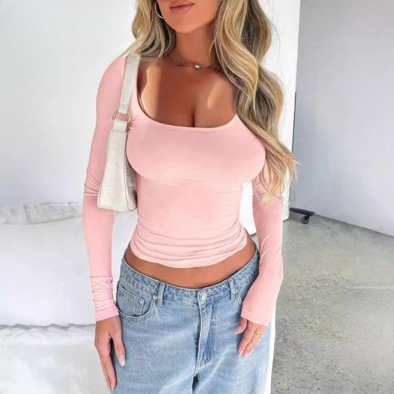 Женский облегающий однотонный топ Y2K с U-образным вырезом и длинными рукавами — купить товар онлайн с бесплатной доставкой по всему миру!