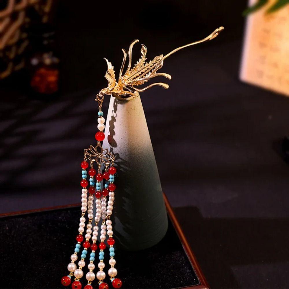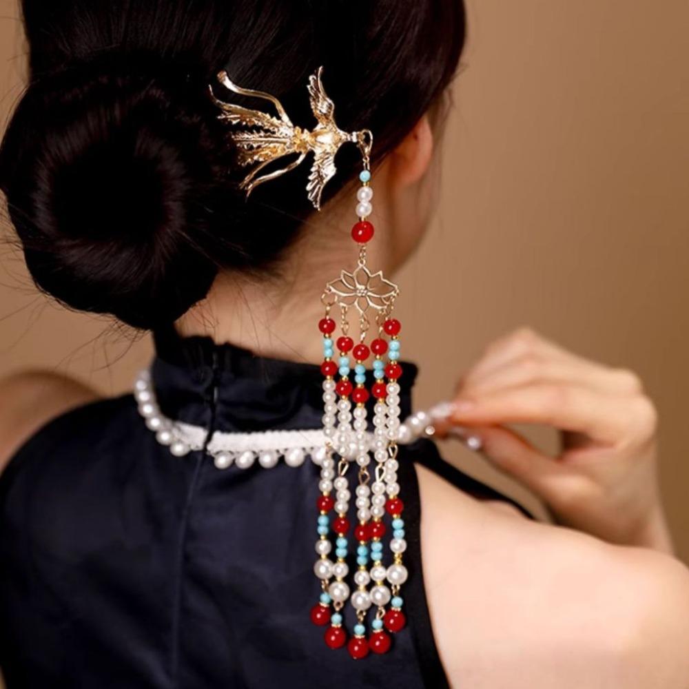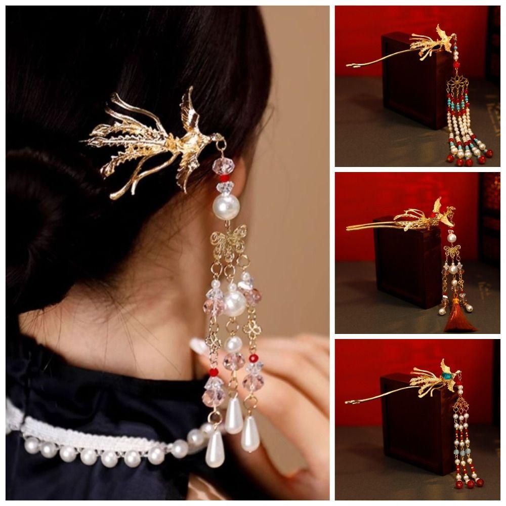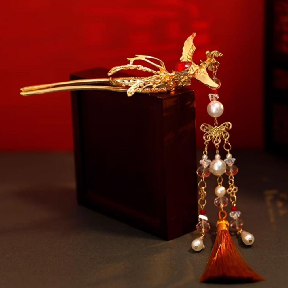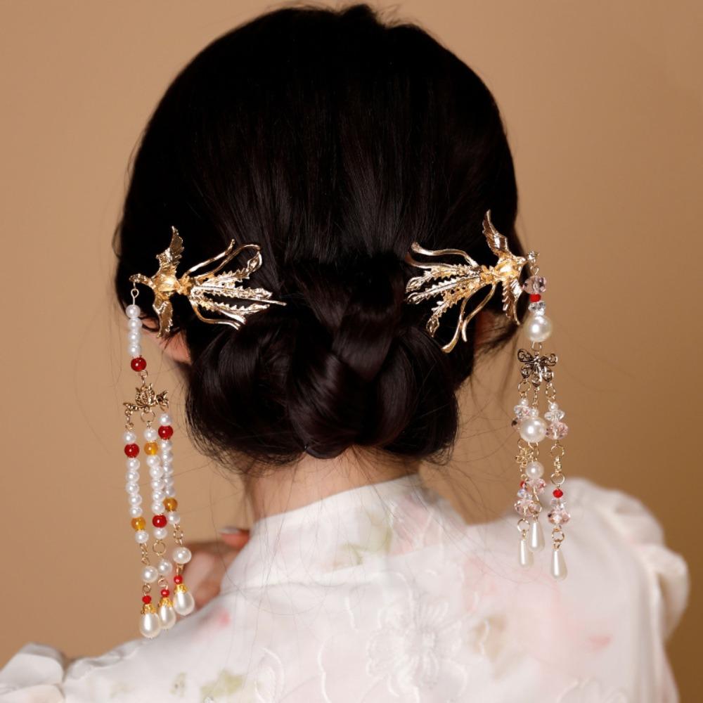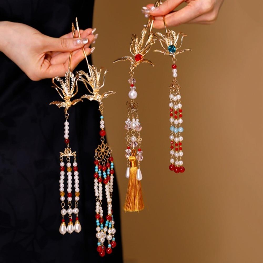 Zinc Zinc Alloy Pearl Fringe Hairpin Retro Step Shaking Hair Stick Bride Tiara Hanfu Hair Accessories