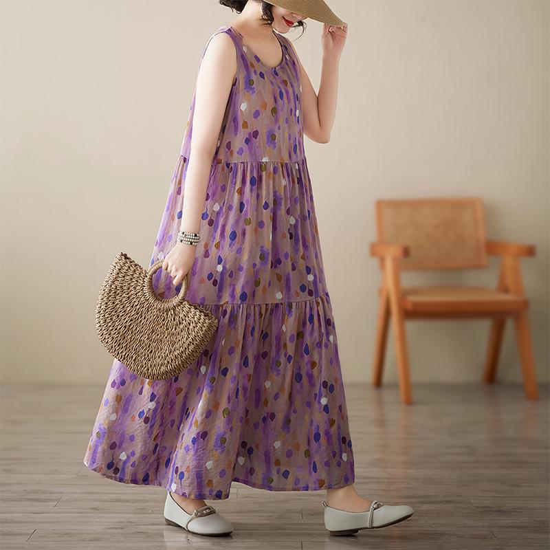 DIMANAF 2025 Новое летнее женское платье большого размера свободного кроя в винтажный горошек, базовый сарафан, повседневное длинное платье — купить товар онлайн с бесплатной доставкой по всему миру!