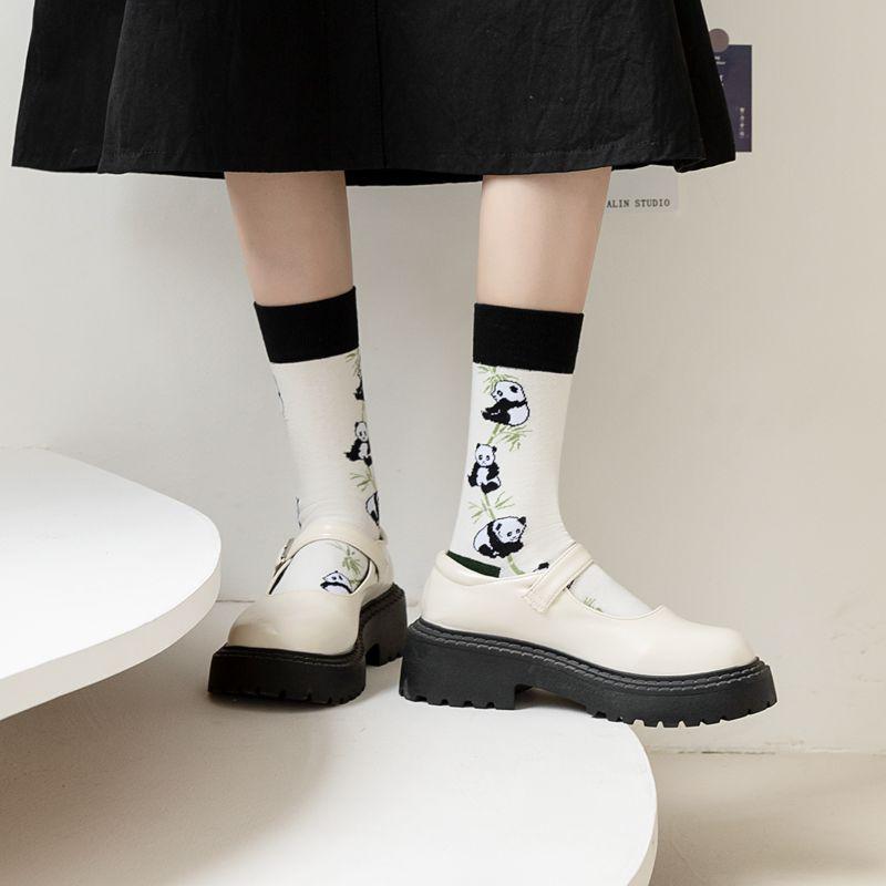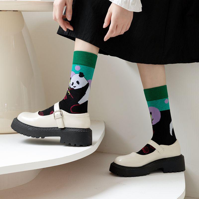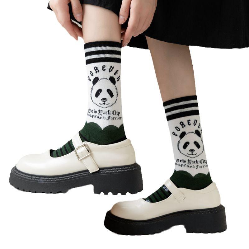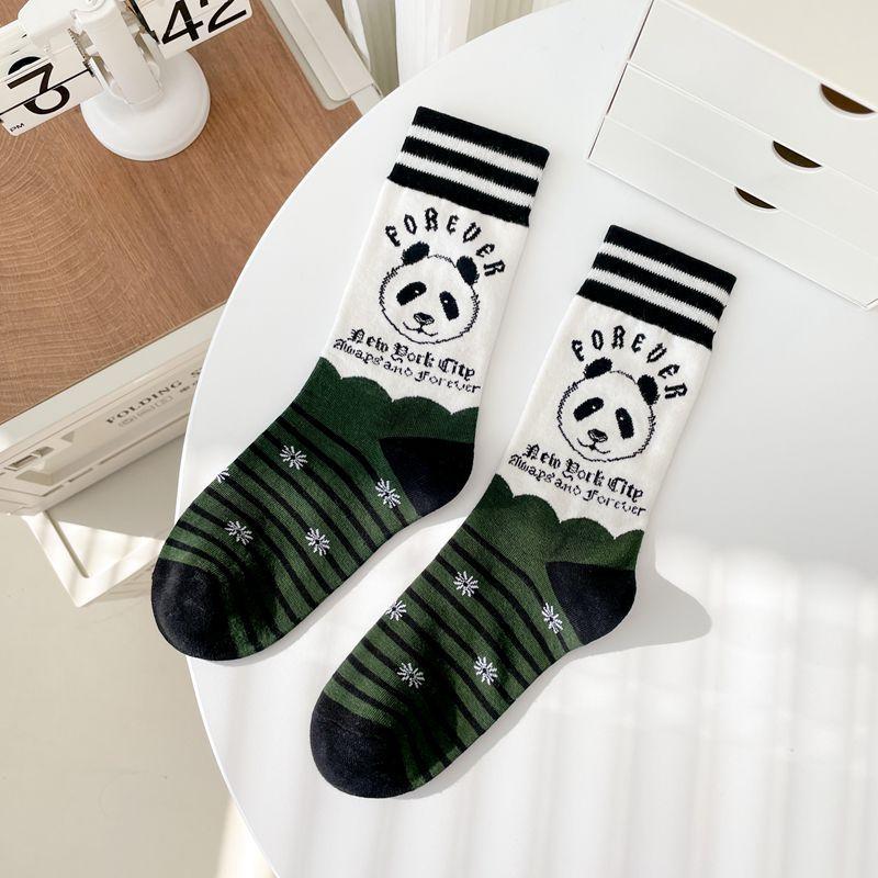 Носки из хлопка с рисунком зеленой панды, модные носки средней длины для девочек, модные забавные женские носки для скейтбординга Kawaii, новые
