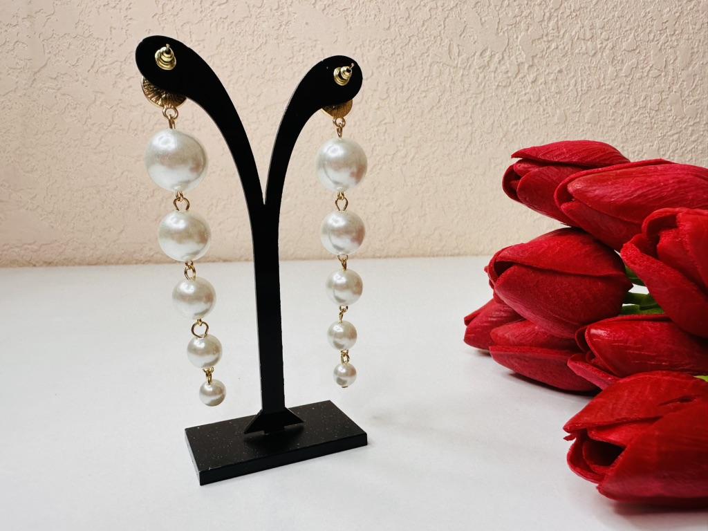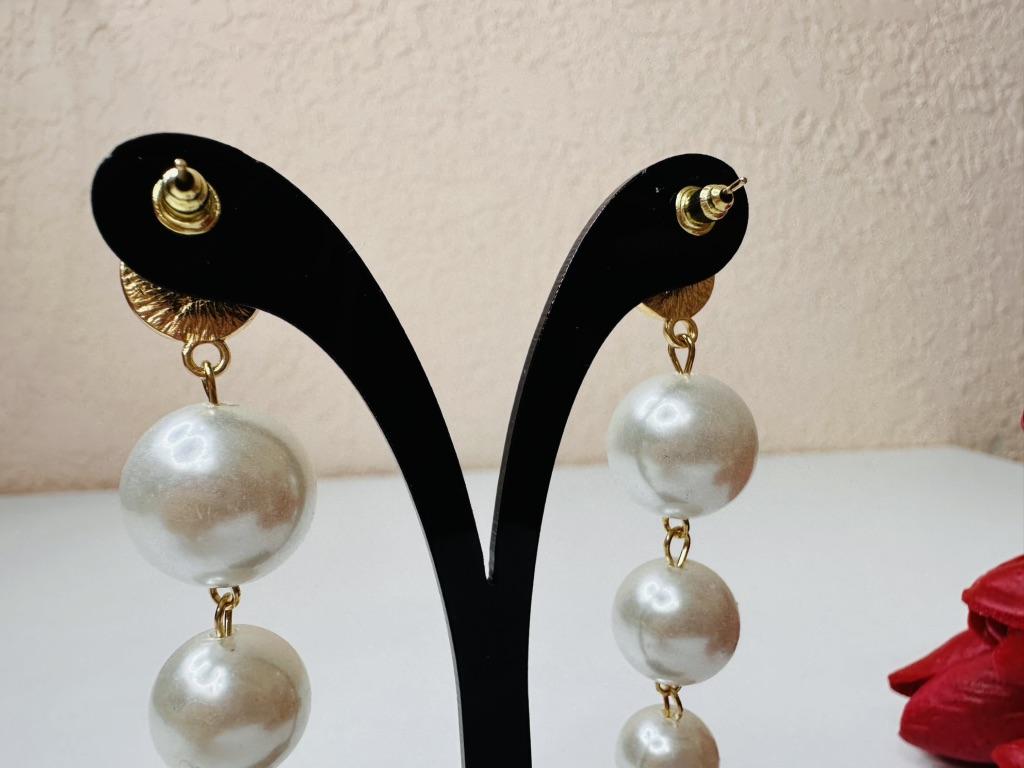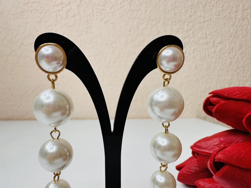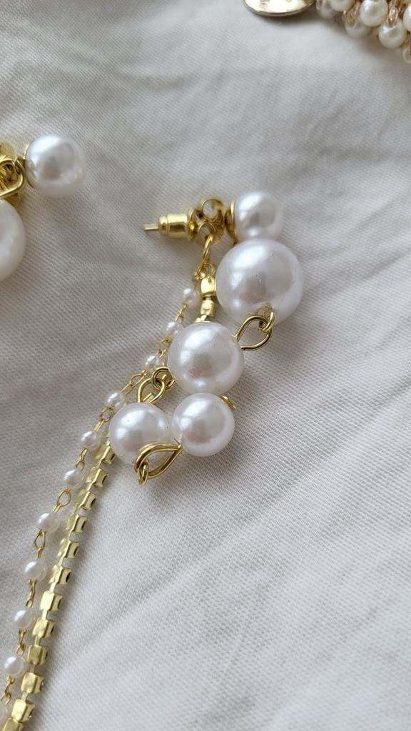 ⚪️⚪️⚪️✨️ Интересные серьги-трансформер, состоящие из двух подвесных элементов: грозди крупных бусин, похожих на жемчуг и застежки с тонкими цепочками, декорированными сверкающими стеклами 💎💎💎 и искусственными жемчужинами. В комплекте есть и простые застежки (можно носить только грозди из крупных бусин). Объемные, выразительные, притягательные и очень милые 🥰🥰🥰👌 Пластиковые жемчужины хорошо прокрашены. Серьги сделаны аккуратно. Мне понравились 👍