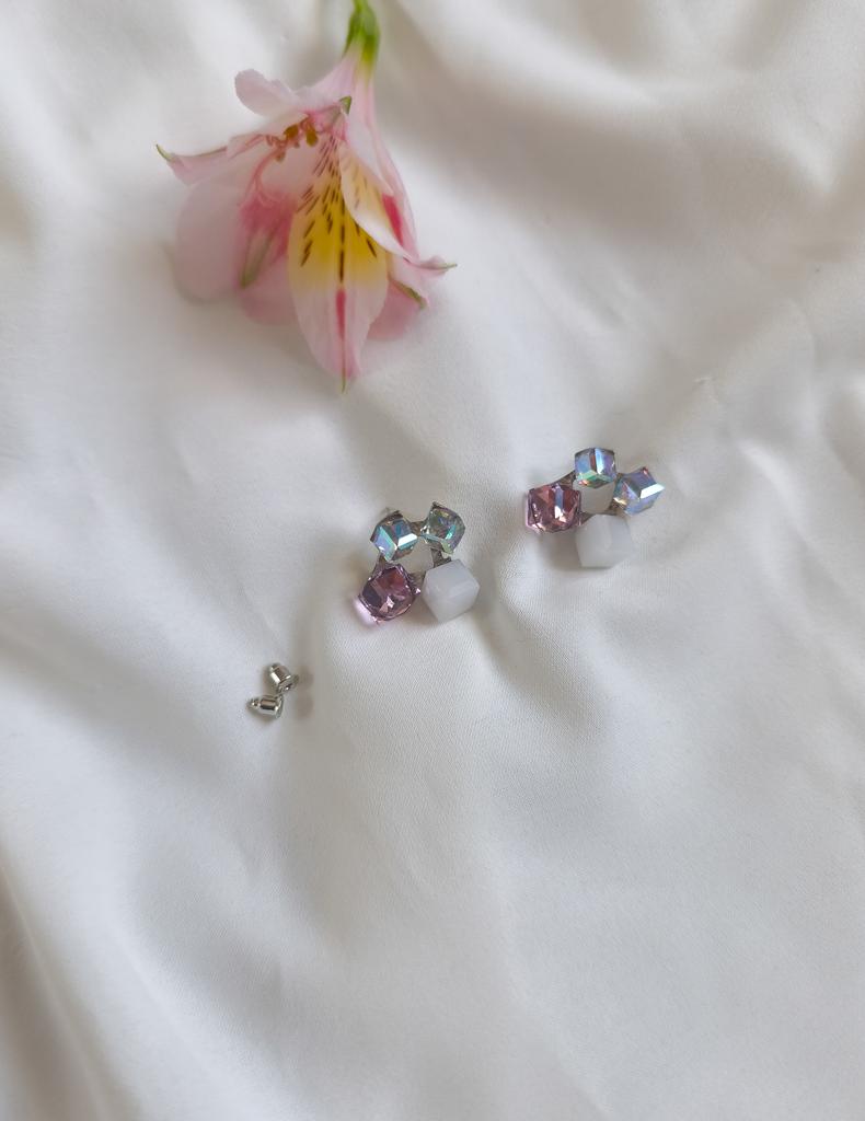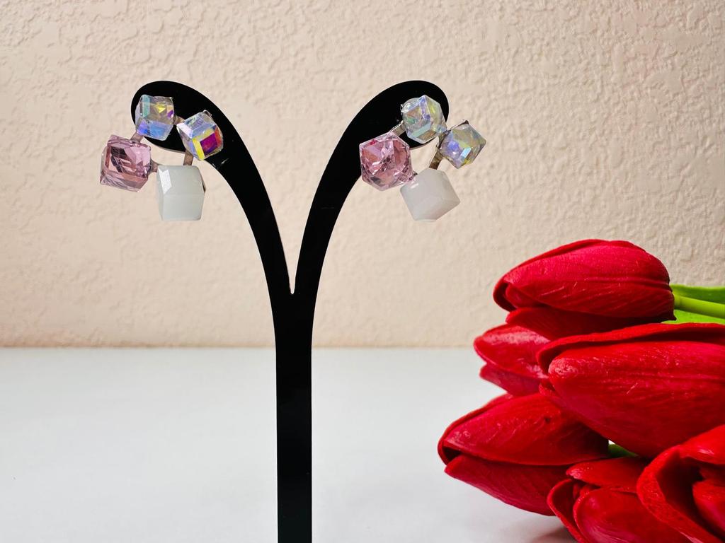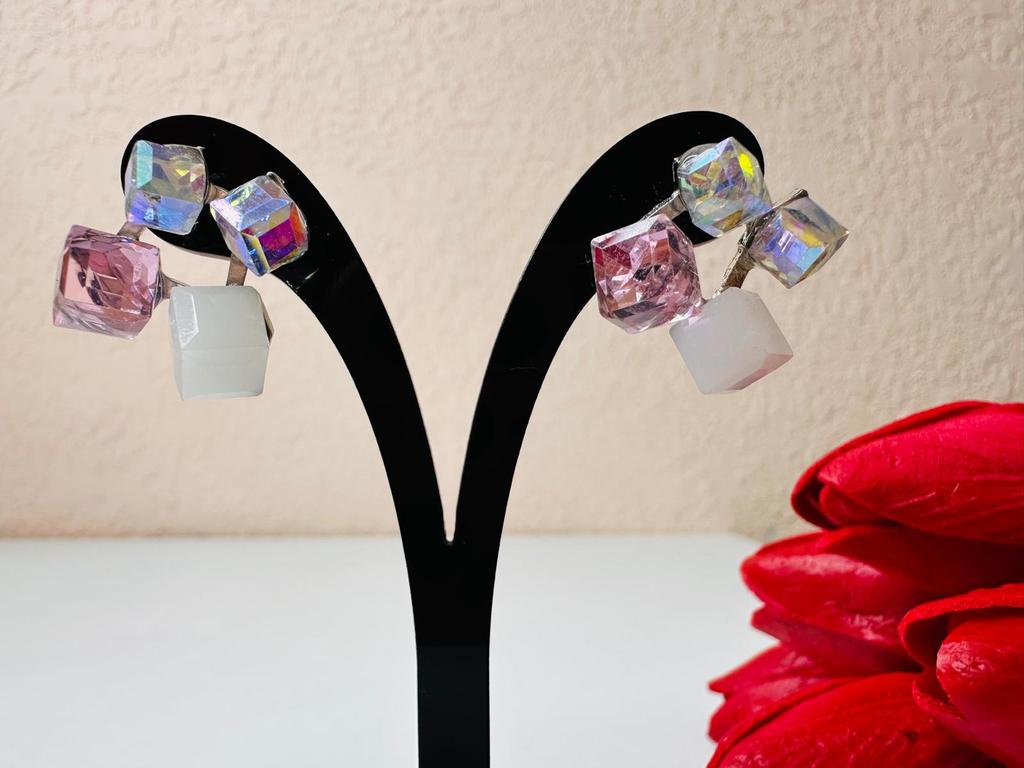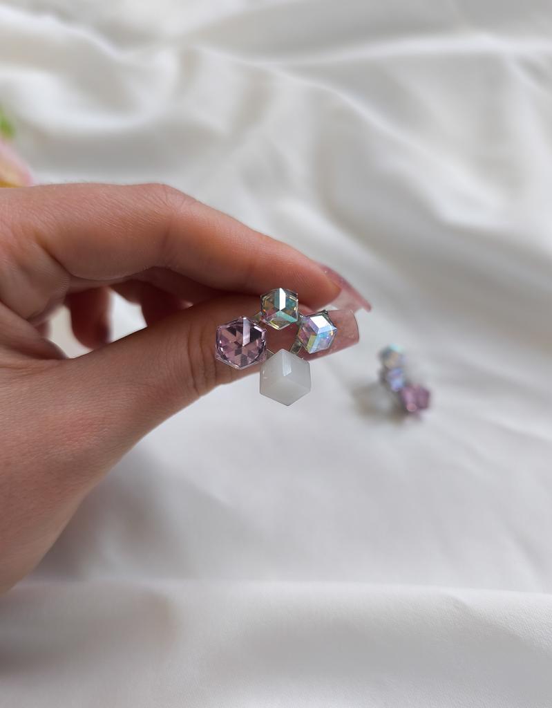 Геометрические квадратные трехмерные серьги-гвоздики с кристаллами мечты. Продвинутый постепенный переход цвета. Сахарный кубик. Универсальные серьги.
