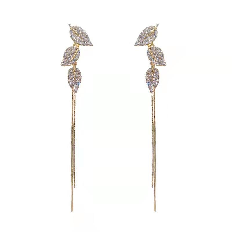 Новые серебряные иглы с бриллиантами и листьями, длинные две серьги с бахромой, супер фея темпераментная девочка маленькие свежие серьги-гвоздики, украшения для ушей