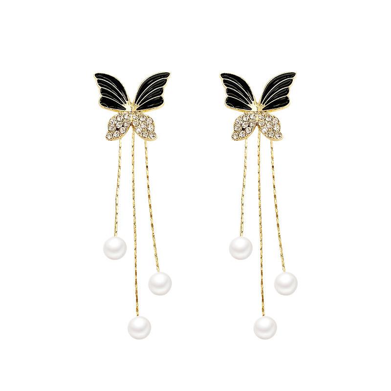 Новые черные серьги-бабочки из Южной Кореи для женщин, серьга-гвоздик для ношения двумя людьми в модном украшении для ушей с длинной бахромой