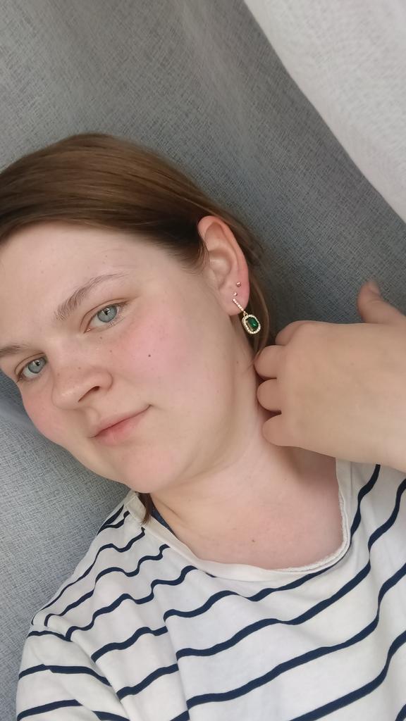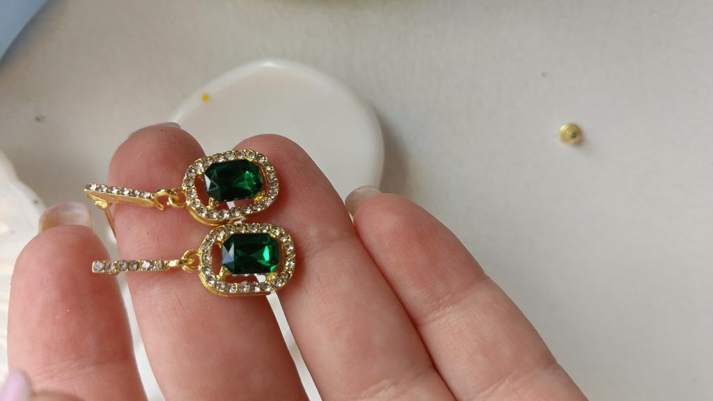 Изумрудный - один из самых благородных цветов. Доставка составила около двух недель. При транспортировке ничего нет повредилось и серьги пришли без брака. Материал - медицинский сплав и стразы. Изготовлено все качественно и аккуратно. Серьги легкие и удобные при ношении. Такие станут изысканным дополнением к любому образу и месту. Покупкой осталась довольна. Красивые серьги, чтобы подчеркнуть свою уверенность. К приобретению рекомендую.