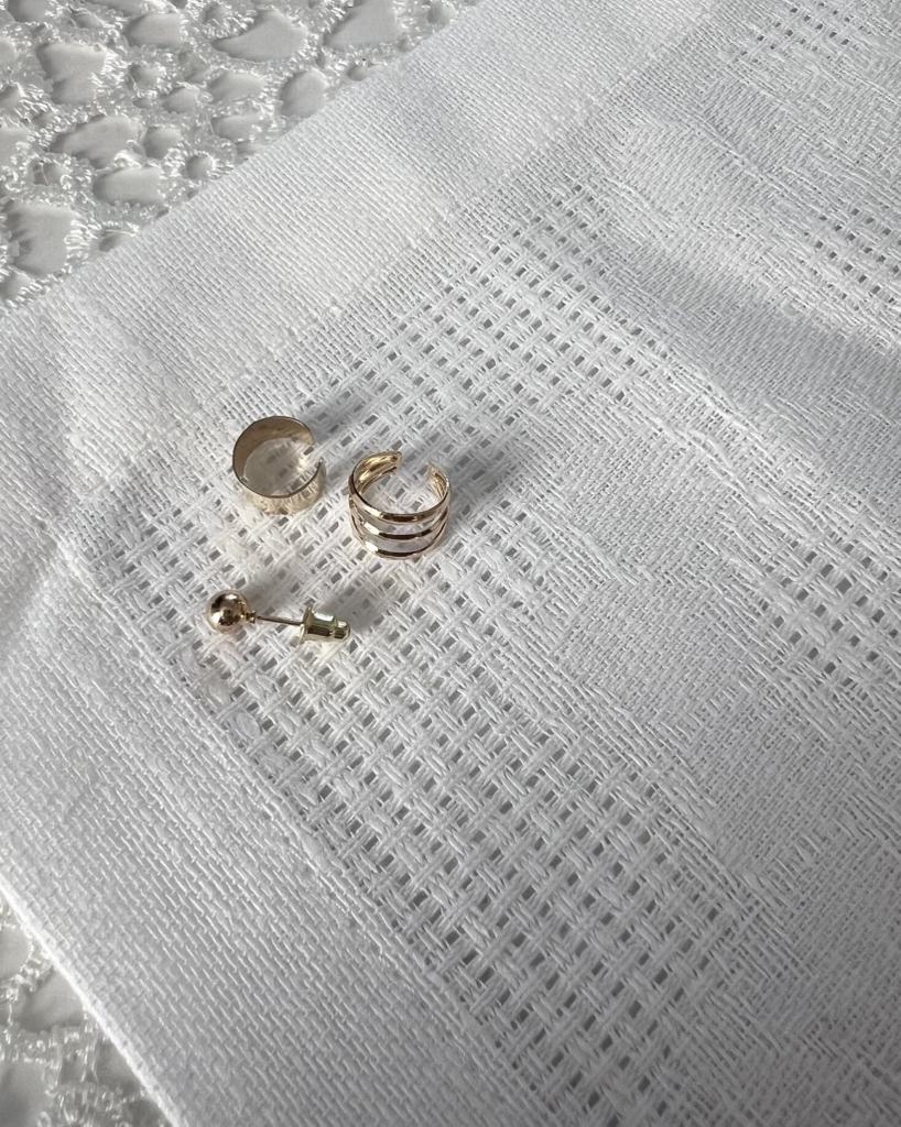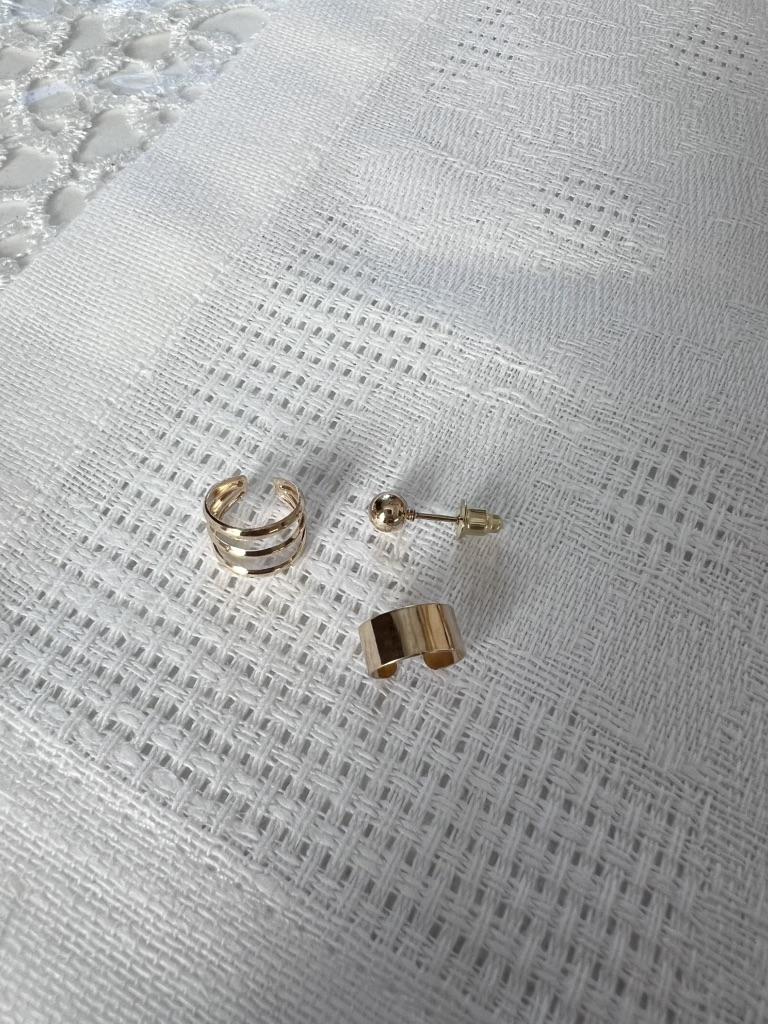 Набор украшений в ухо. По ссылке украшения представлены в белом и желтом цвете металла. В набор входят две каффы и пусет-гвоздик. Состав украшений- металлический сплав. Я их не мочила. За две недели носки ничего с ними не стало. Смотрятся в ухе оригинально. Держатся хорошо. Приходят в целофановом пакете. Доставка вышла чуть больше месяца. Советую. 💛