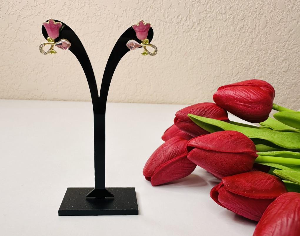 Очень красивые серьги 😍 ✔️Красивые тюльпаны яркого цвета с застёжкой гвоздики. ✔️Изготовлены из металлического сплава золотого цвета и украшенны искусственным камнем. ✔️Не вызывают аллергии но это конечно индивидуально. ✈️ Посылка шла меньше месяца до Молдовы , Кишинёв . ✅ Посылка была упаковано хорошо. ✅ Качество отличное. ✅ Смотрится очень элегантно и эффектно в тоже время. Однозначно рекомендую к покупке 💕