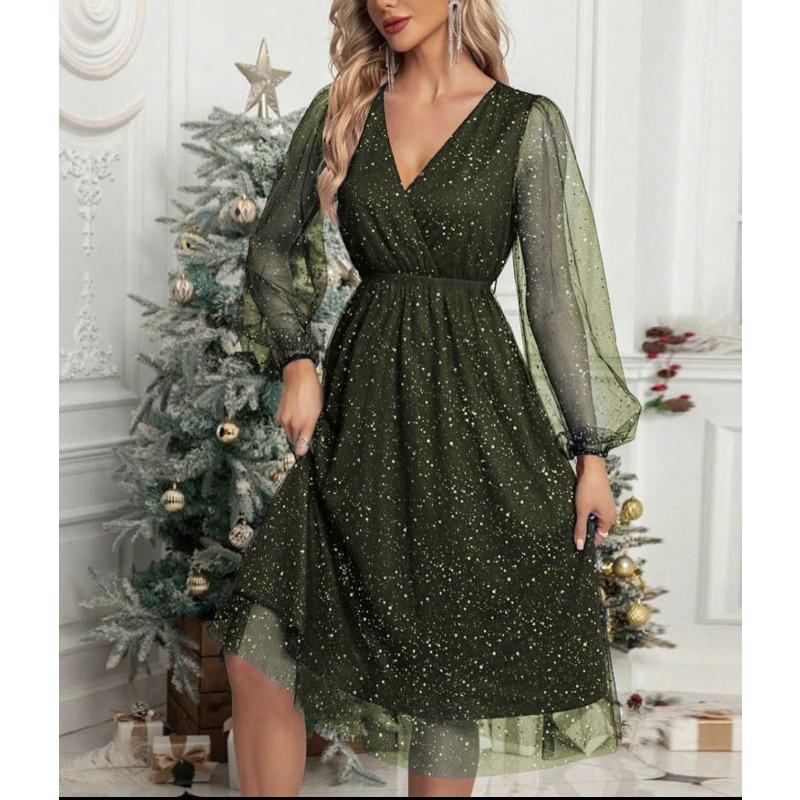 Женские новые элегантные облегающие однотонные сетчатые прозрачные платья с V-образным вырезом и отделкой из сеточки