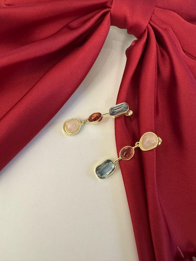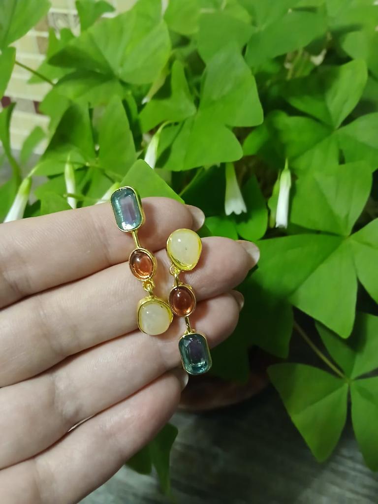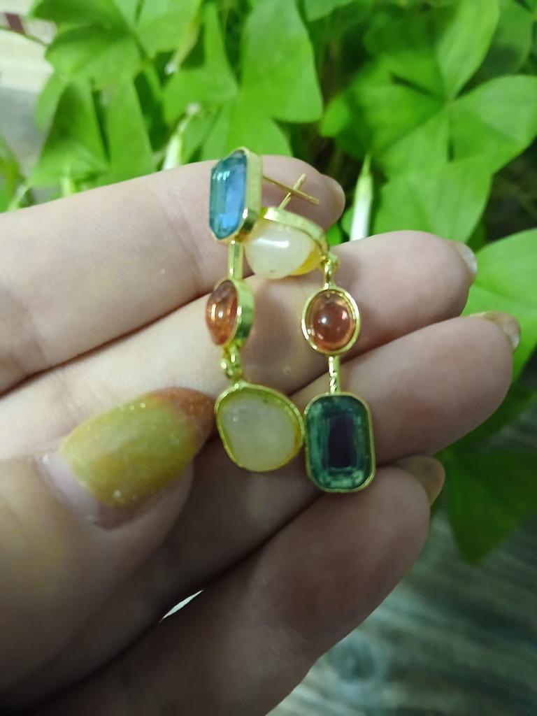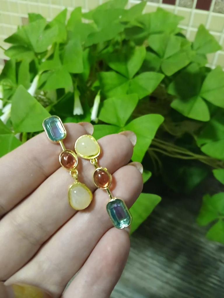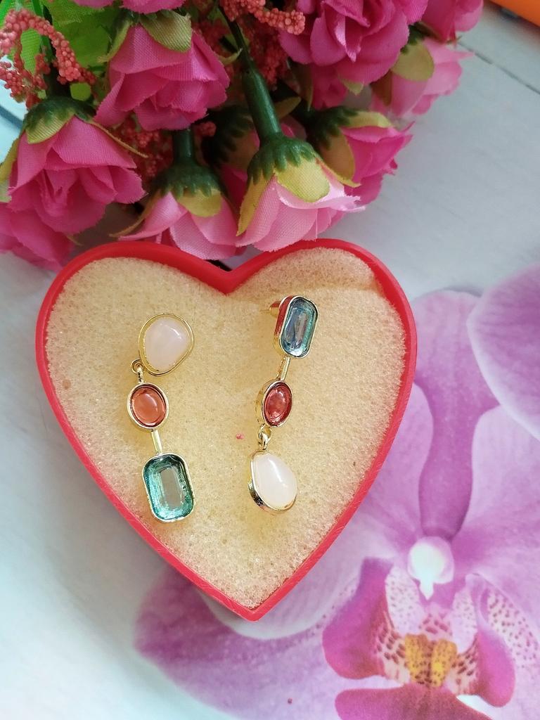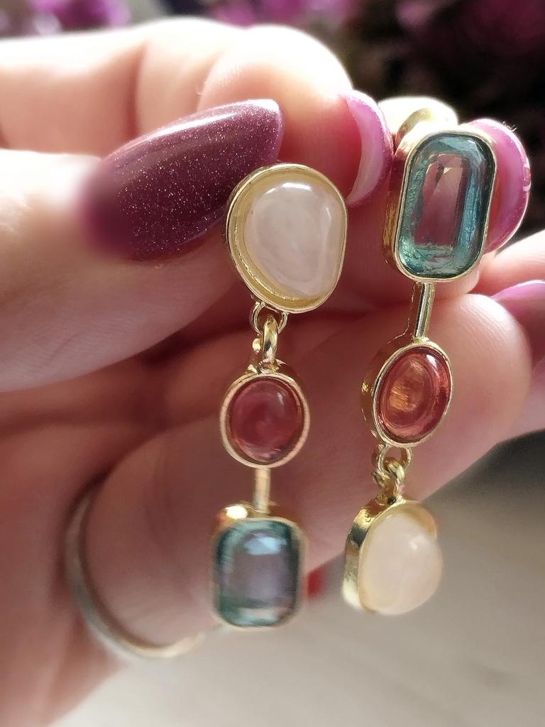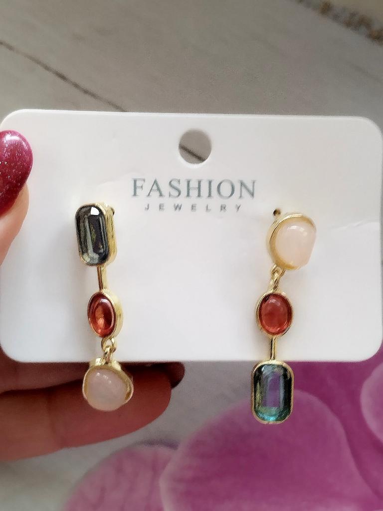 ✨✨✨Ассиметричные цветные серьги - висюльки. Выполнены из бижутерного сплава под золото, вставки разноцветные камни ( стекло). Камни не яркие, но на свету сверкают. Замок - гвоздик. Заглушки металлические. ✨✨✨Доставка месяц в сборной посылке. Отслеживание до почтового отделения. Серьги неплохие, но мне как-то не зашли, может подарю кому-нибудь 😊🍀.